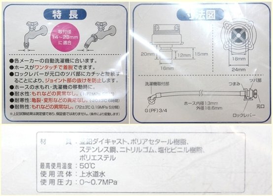 3点まとめて 未開封 保管品 洗濯機給水ホース 1m 全自動洗濯機 ワンタッチ接続 元口 口金付き 取付径14~23mm コーナン LIFELEX カクダイ