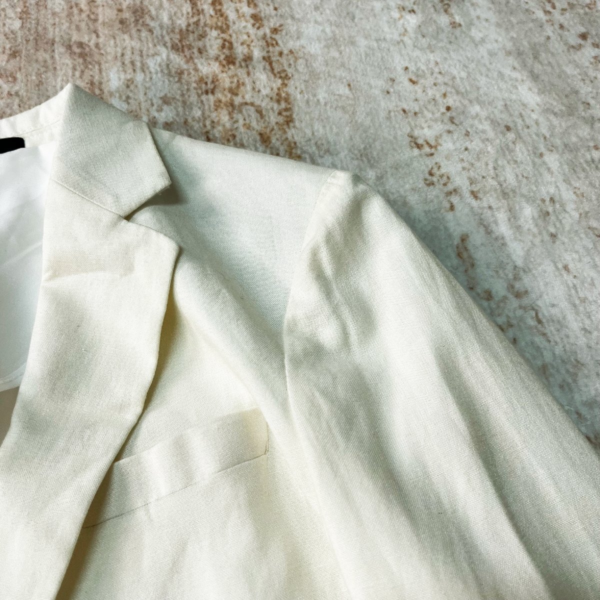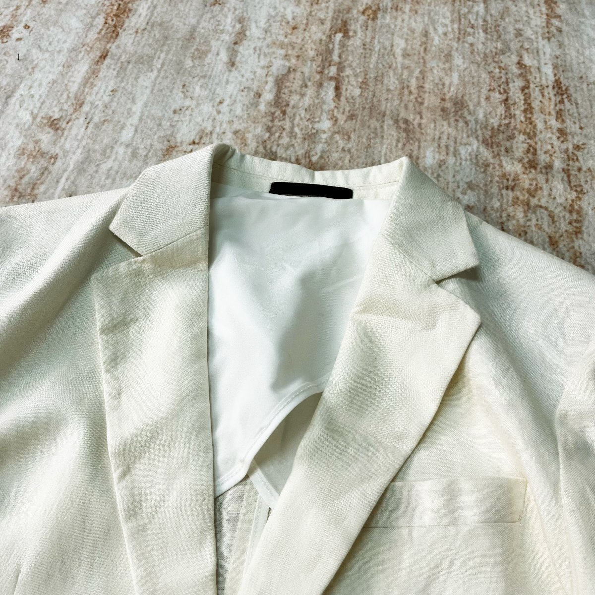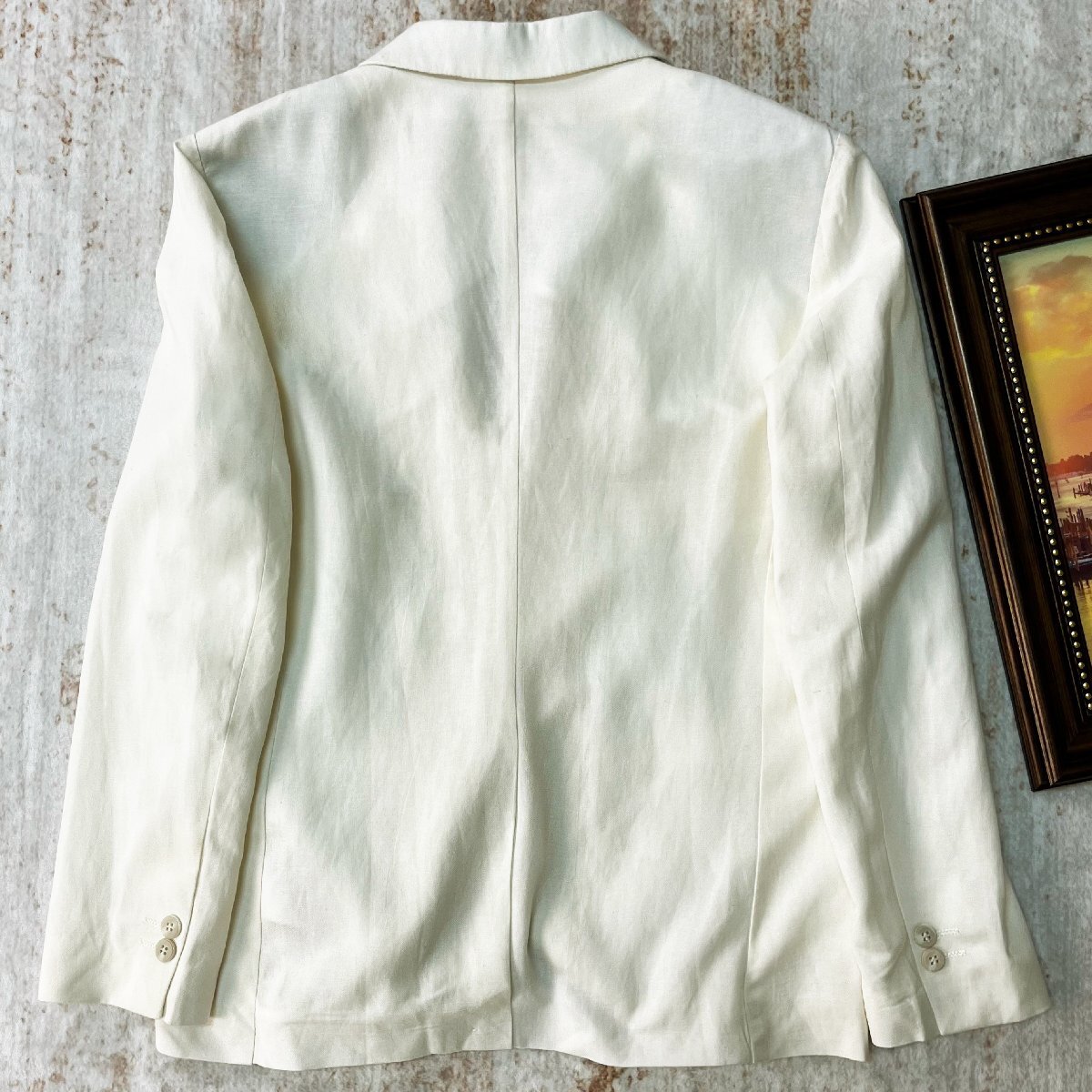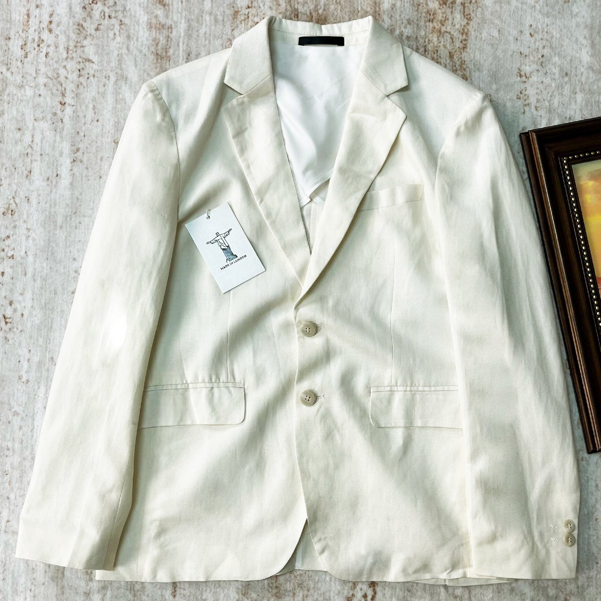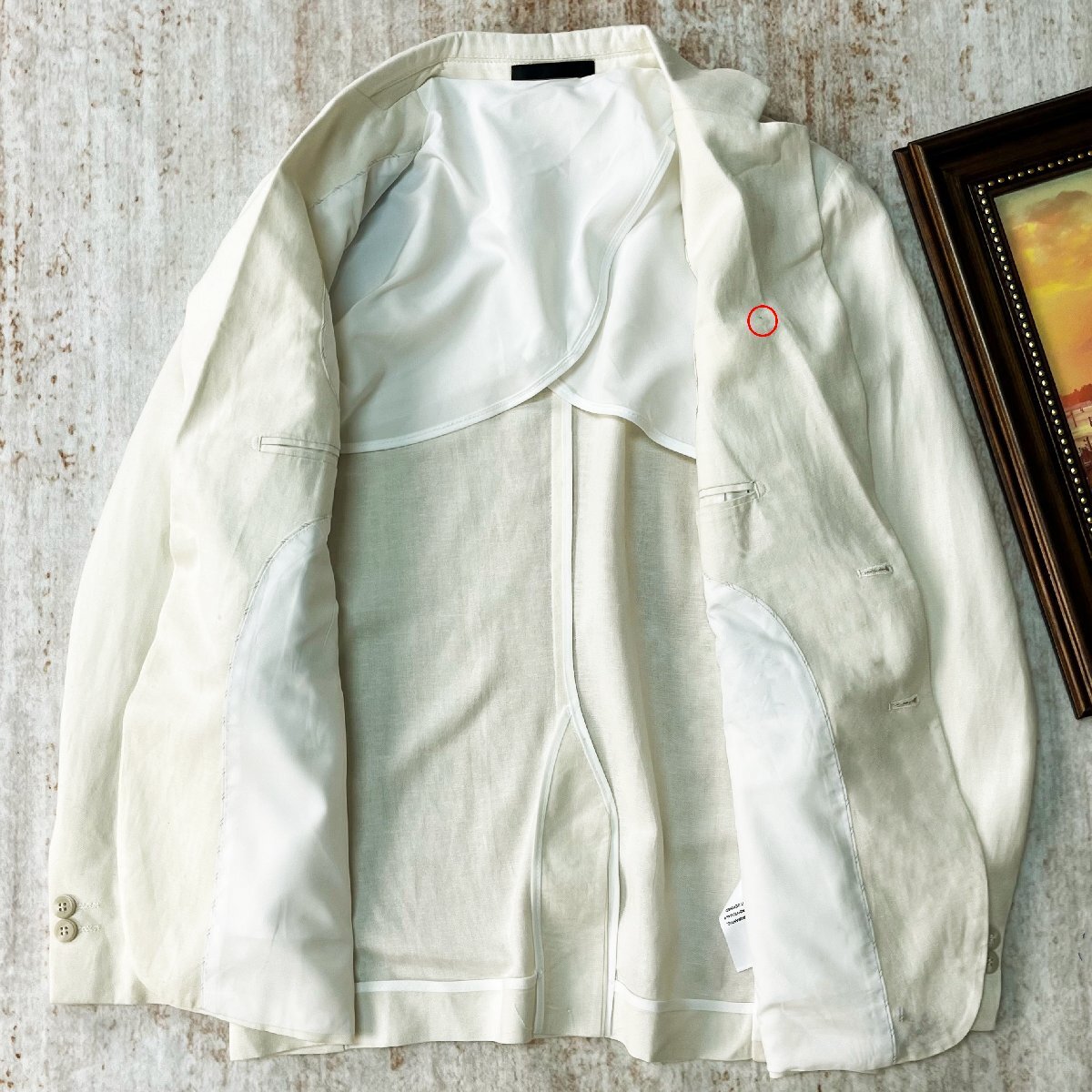 一枚限定 テーラードジャケット ロンドン製造 リネン 通気 ソフト 肩パット ブルゾン ジャケット ブレザー アウター ビジネス 通勤 SIZE:L