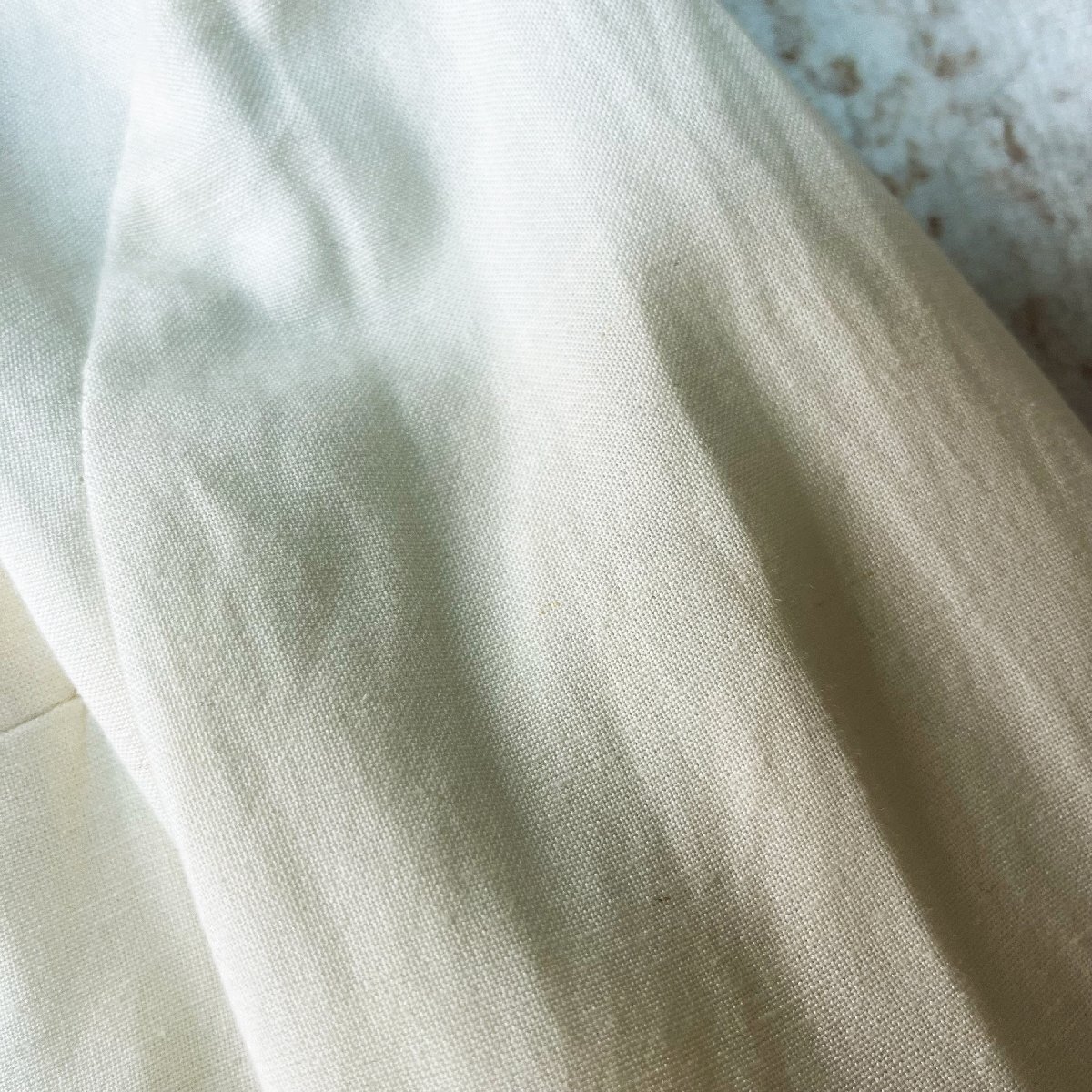 生地には肌馴染みの良い上質なリネン混紡素材を使用し、さらっとしたドライな肌触りが春夏に最適。通気性にも優れ、軽やかで快適な着心地。丈夫で実用性も高く、長く愛用いただけます。