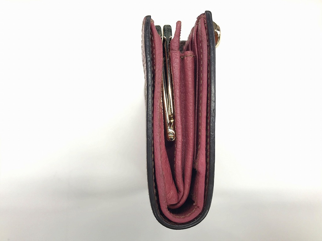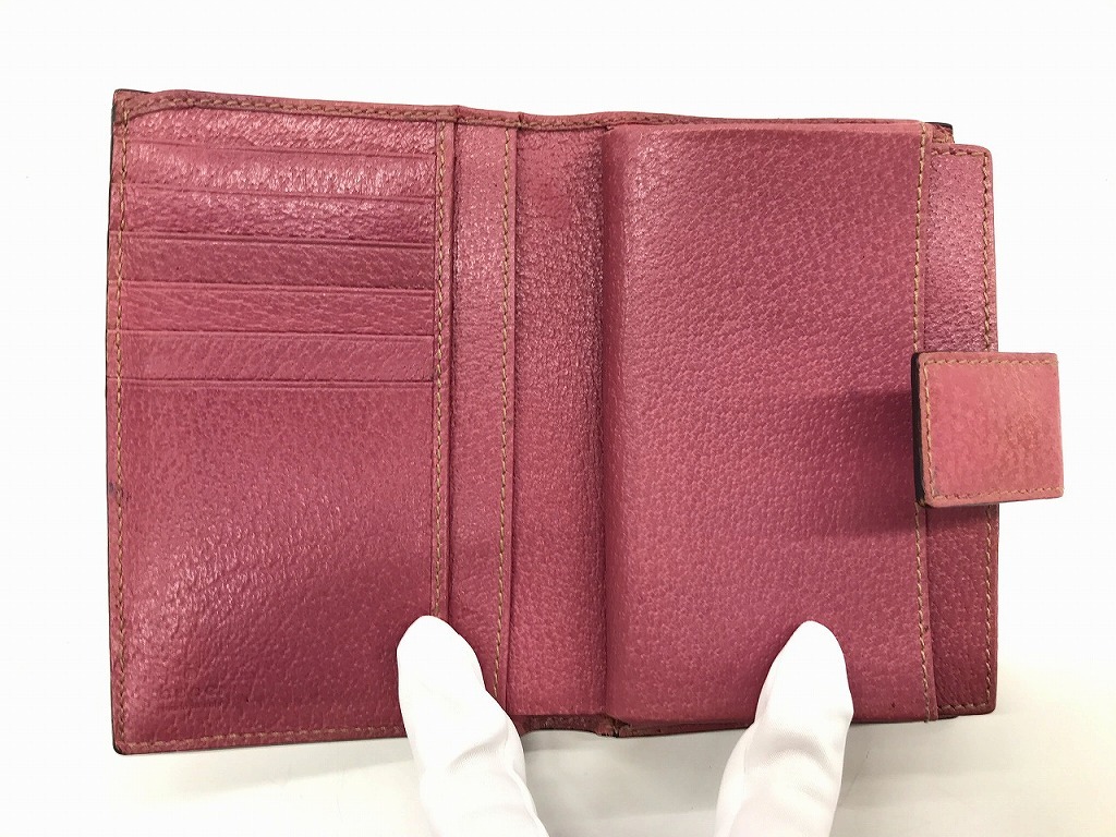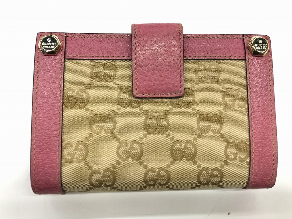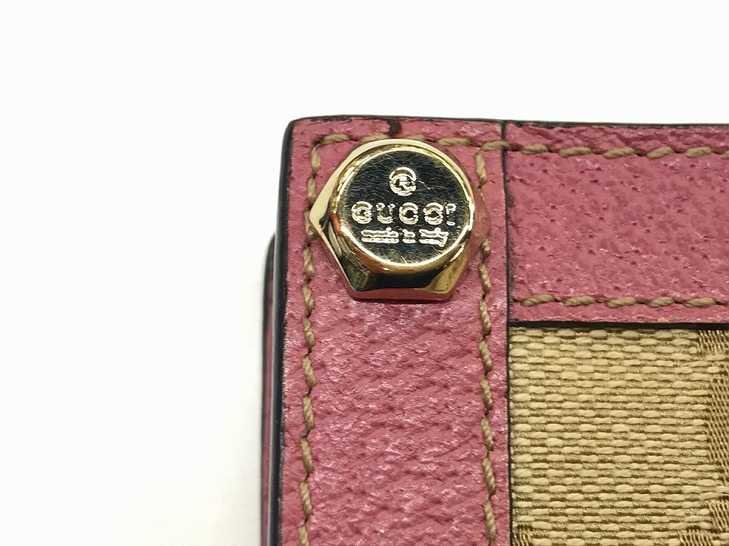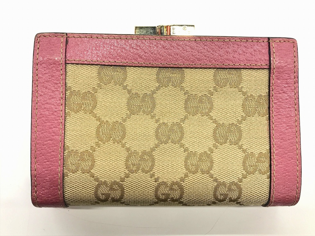 グッチ GUCCI GG柄二つ折り財布 がま口財布 レザー キャンバス ピンク ベージュ 154163