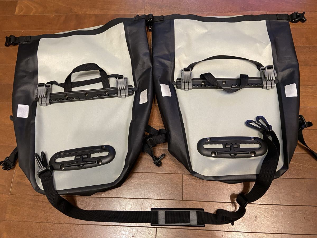 合計20Lで、フロントにも、リアにも使用できる絶妙なサイズの軽量防水ツーリングバッグです。少し傷ありますが、数える程度の使用で酷使はされてはいません。市販のツーリングバッグでも最軽量レベルなので、遠征キャンプツーリング等活躍すると思います。