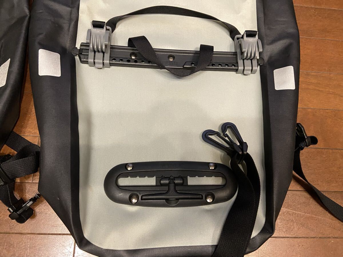 防水性に優れたサイドバッグです。出し入れ口を3回以上折り返しバックルを留めることにより、高い防水性を得ることができます。付属のアタッチメントをキャリアにフックするだけで、前輪・後輪のキャリアに簡単・確実に装着できます。ツーリングから通勤まで幅広く活躍します。