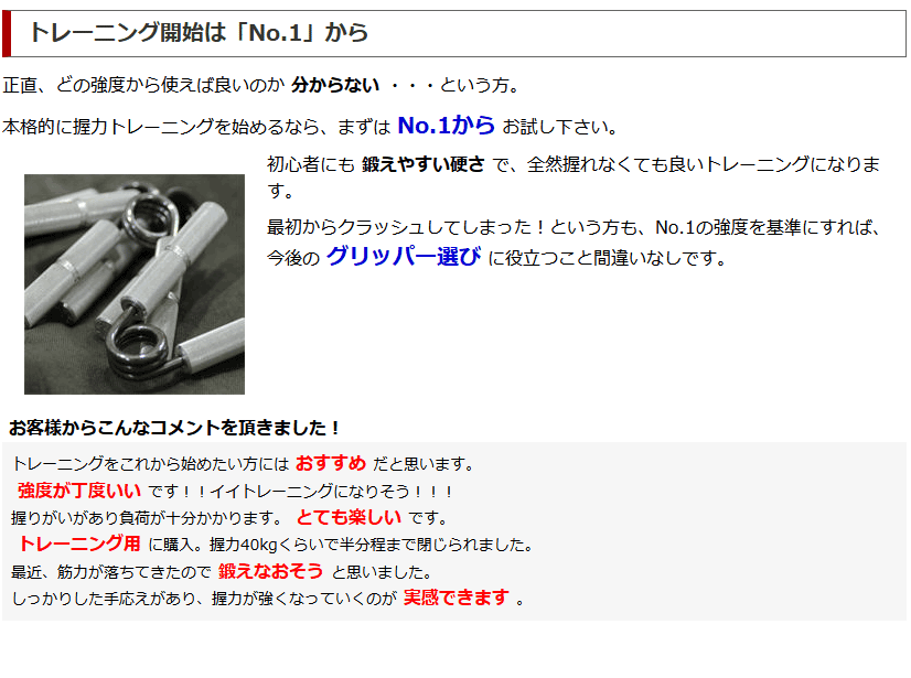 初心者やリハビリ向けから、アスリートの握力トレーニングまで負担の幅が広いのが特徴的。