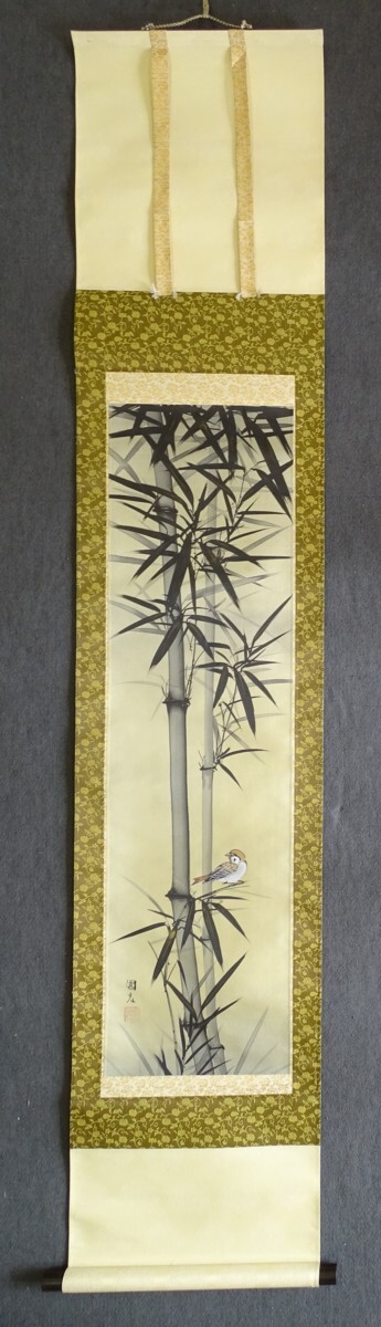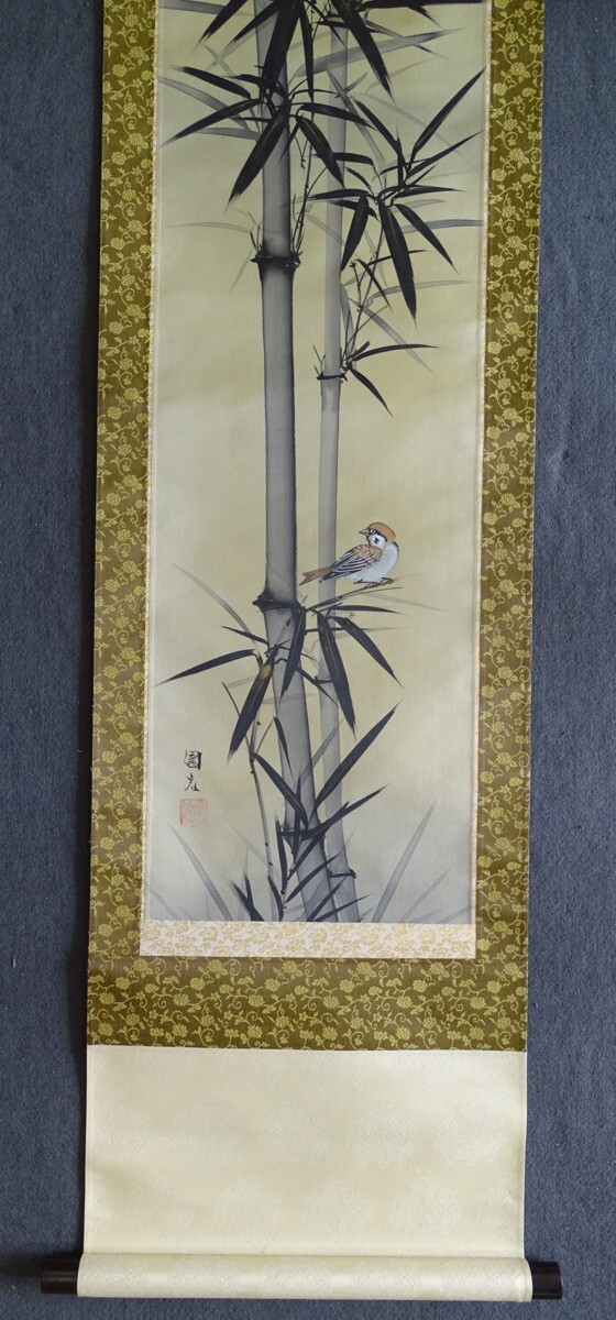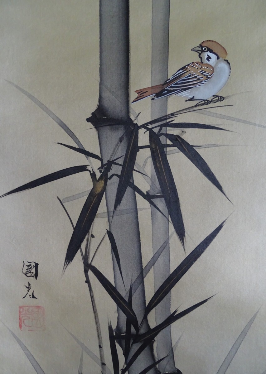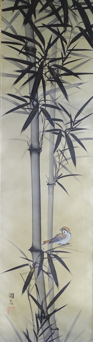 〈236〉星野国光 作「墨竹に雀」(日本画)掛軸