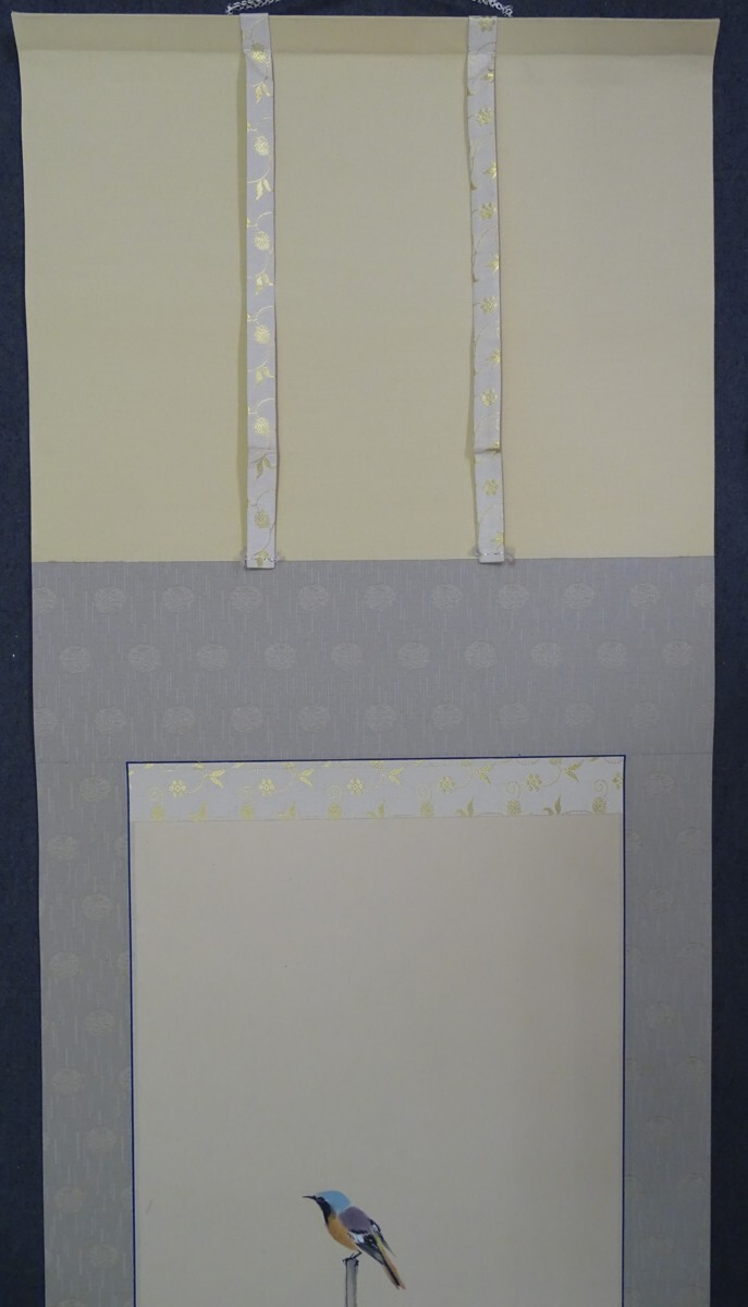 ・品名:掛軸 ・作者:竹田寿昌 ・画題:「菊に小禽」・技法:日本画(直筆)(B2-HIO-R4-6-12-38.5)