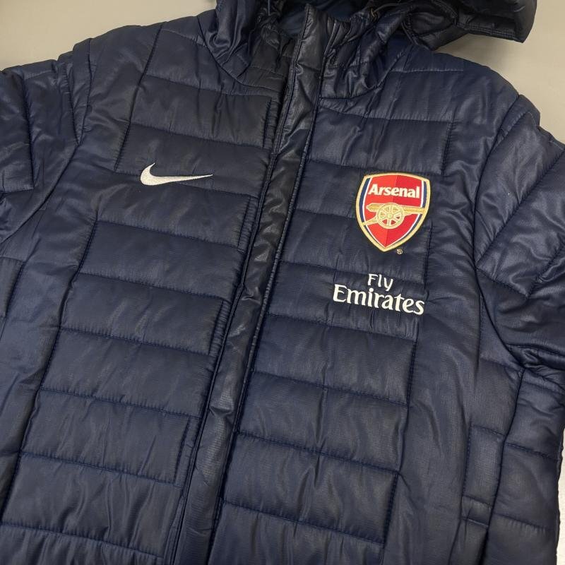 ナイキ Arsenal アーセナル スウォッシュ ロゴ 中綿 ナイロン フード ジャケット 紺 ネイビー S