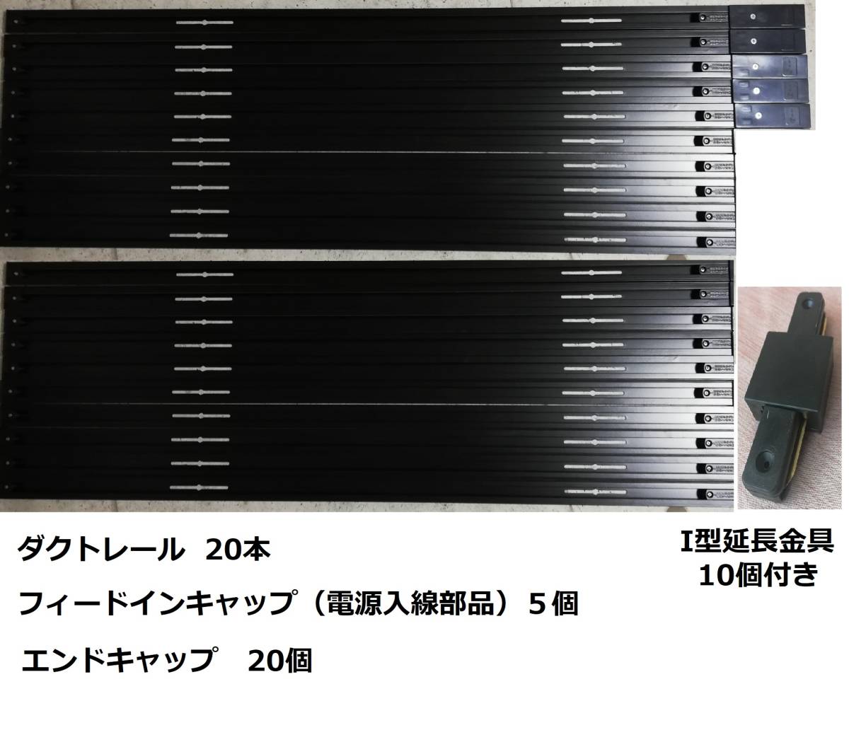 コスパ最高 20本 黒 配線ダクトレール I型延長金具10個付 スポットライト用 ライティングレール フィードインケース5個付 照明器具 TDR-90B