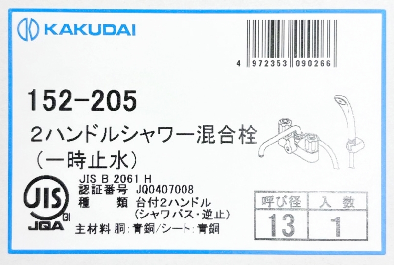 商品名 | 台付タイプ 2ハンドルシャワー混合栓(一時止水) 152-205 |