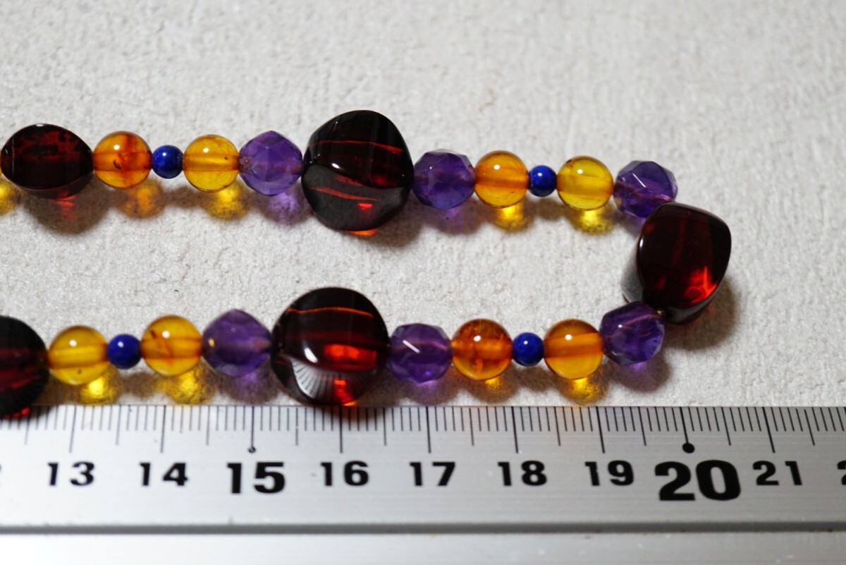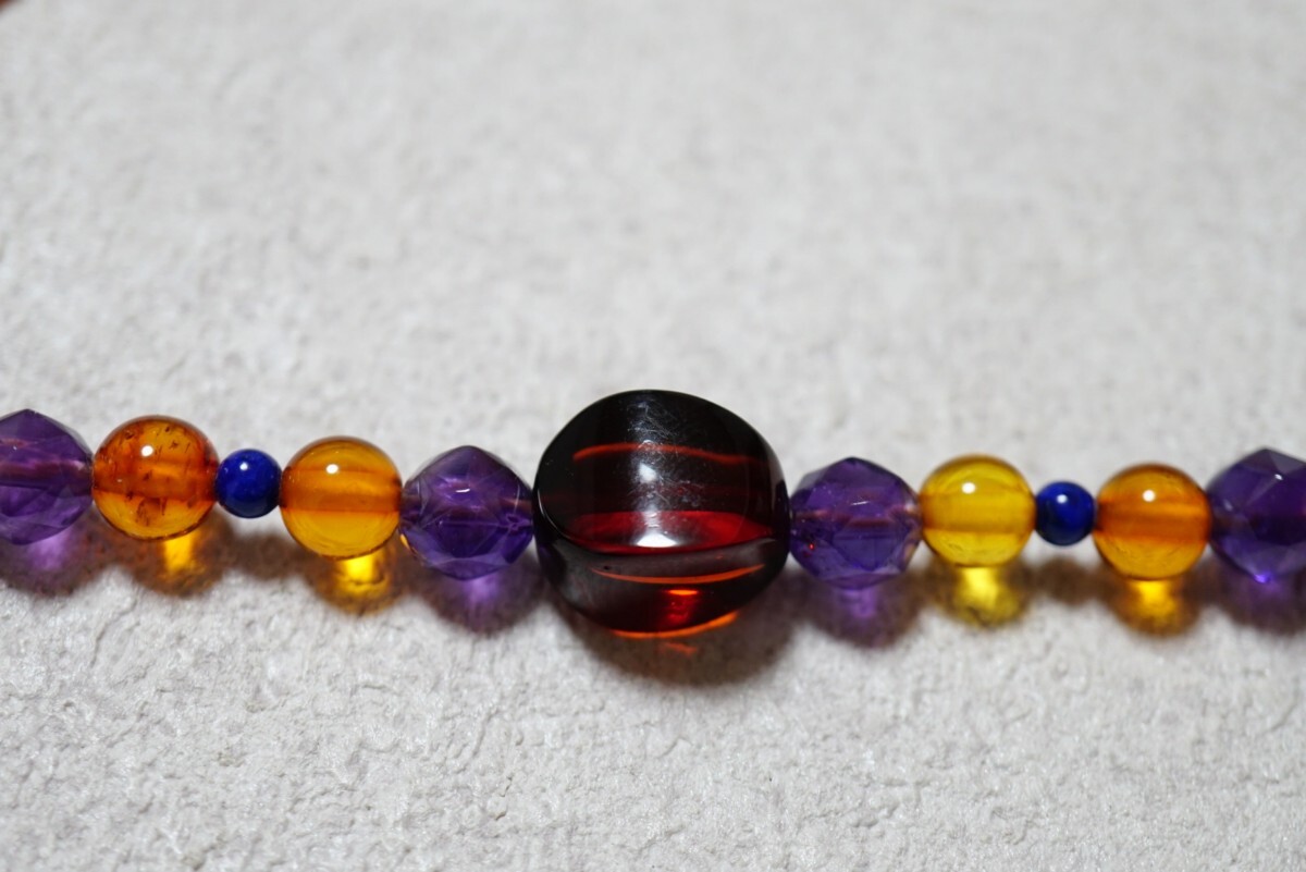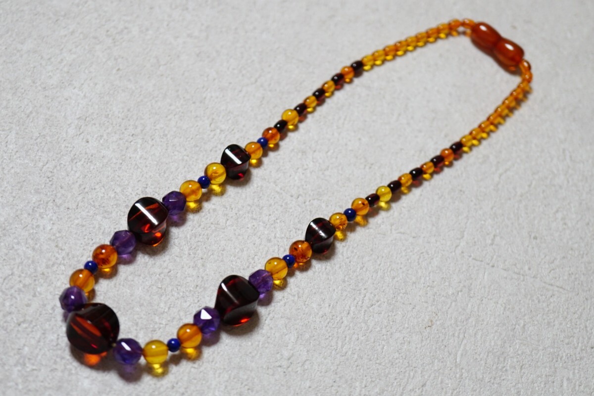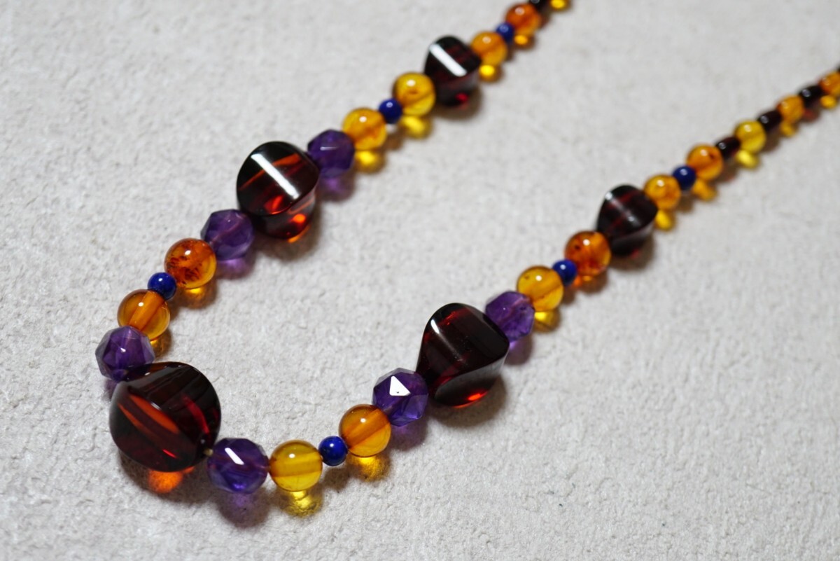 14 天然琥珀 アメジスト ラピスラズリ ネックレス ペンダント ヴィンテージ アクセサリー 冠婚葬祭 天然石 カラーストーン アンバー コハク
