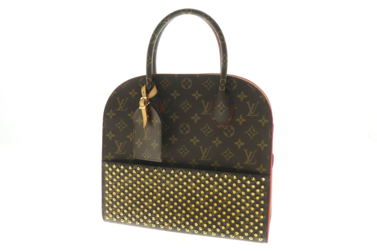 LCIQ7-9-14 ルイヴィトン クリスチャン ルブタン ハンドバッグ アイコノクラスト コラボ モノグラム スタッズ レディース ブラウン 美品