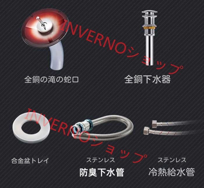 【混合栓付き】水栓の弁芯はセラミックで50万回の循環テストを通して、水が漏れない、10級電気めっき基準に達し、表面処理は酸性塩霧試験に合格する。水栓は曲線力学設計を利用して飛散防止できます。ガラスの上を綺麗に流れ落ちる水流が楽しめる水栓です。