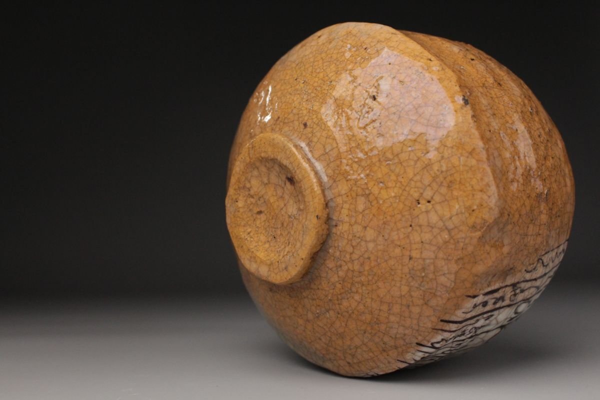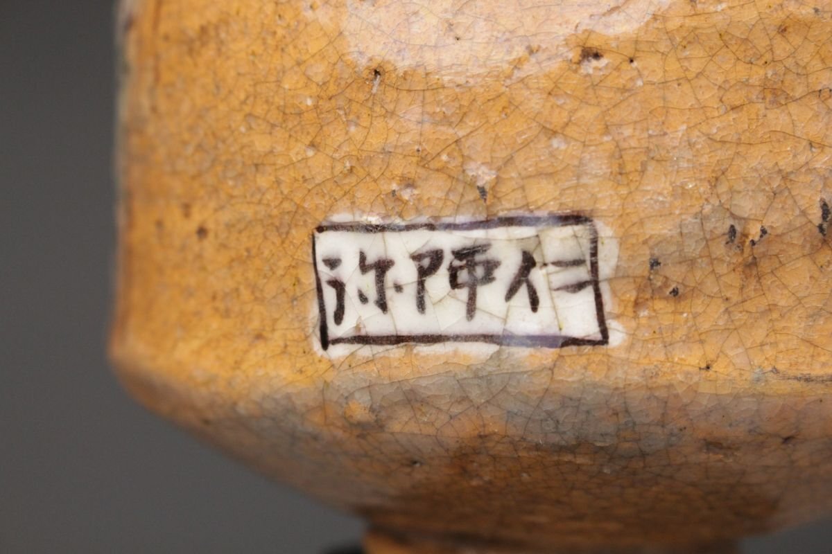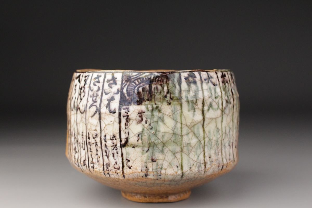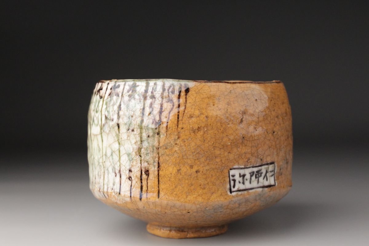 * * * 商品詳細 * * * ここでしか出逢うことのできない唯一の美をご紹介させて頂きます。 二代 高橋道八(仁阿弥)作 暦手茶碗 江戸時代後期、仁阿弥こと二代高橋道八(17831855)の手による希少な暦手茶碗。長石釉を薄く掛け、文字が連続して描かれる暦手の意匠は、写し物を基盤に独自の色絵表現を確立した道八の作域を端的に示しています。 手捏ねにより成形され、箆で整えられた丸みを帯びた器形は素朴でありながら品格を失わず、やや低めの高台や時代による虹彩が、時代の息遣いと風格を伝えます。箱書には墨書で「暦手 仁阿弥」と記される時代箱が添い、来歴の確かさを物語ります。 煎茶席はもちろん、研究資料やコレクションの中心となるにふさわしい一碗です。稀有な作域を示す逸品を、ぜひじっくりとご堪能ください。 ■商品内容/ 茶碗、時代箱 ■サイズ/横11.5㎝×高8.5㎝ 箱:横14㎝×高12㎝×奥行14㎝ ■状態/ スレ、小傷、汚れ、箱にスレ、傷、汚れがございます。 ※写真にてご確認、ご了承の上ご入札下さい。