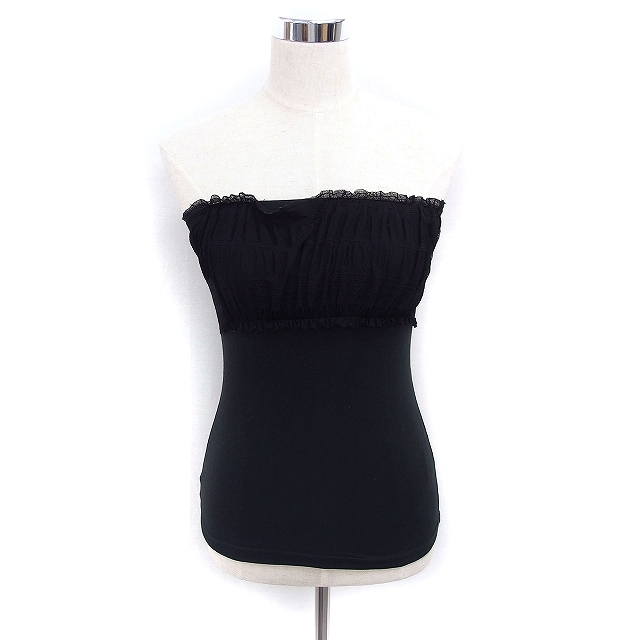 グレースコンチネンタル GRACE CONTINENTAL レース付き ベアトップ ノースリーブ 無地 コットン 綿 36 ブラック 黒 /FT2 レディース