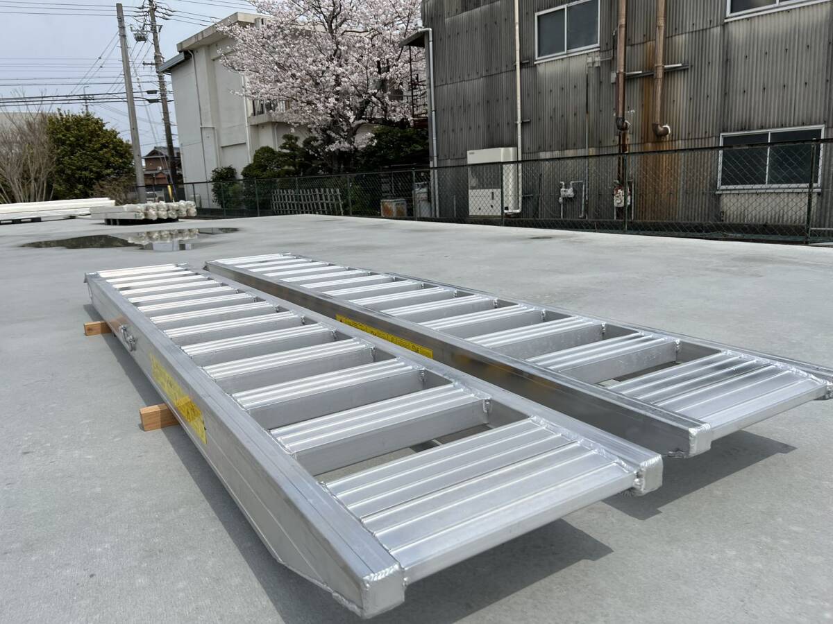 取っ手付 20cmベロ 全長3m アルミブリッジ 重機対応 5トン(2本) キャタピラ/ アルミラダー ショベル ミニユンボ ゴムクローラー リフト5T