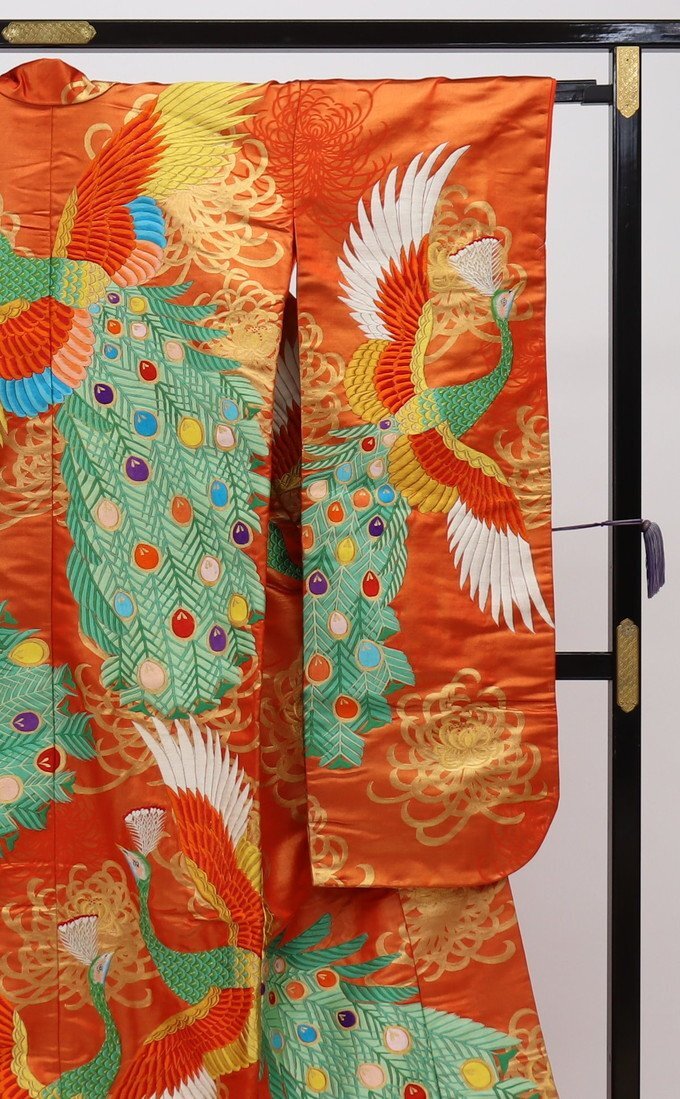 ★豪華な色打掛★ サイズ、状態は一番最後の画像をご参照ください。 和装では最高位とされているので、結婚式で 使われるのはもちろん、外国の方にも喜ばれるので、 プレゼントとしてもおススメです♪ 豪華な絵柄や刺繍は和室のインテリアの装飾としてもご利用頂けます☆ 色打掛特集ページはこちら ↓↓↓↓↓↓↓↓↓↓↓↓↓↓ 【色打掛大量出品中!!!!】 ※打掛の同梱発送は3点までとさせていただきます。 3点以上落札の場合は落札点数に応じて送料が変更になりますのでご了承お願いいたします。 ※検品のうえ商品の状態をランクで記載しておりますが、見落としによるシミや汚れがある場合がございます事をご了承下さい。 素材:一番最後の画像をご参照ください。 サイズ:一番最後の画像をご参照ください。 | |||