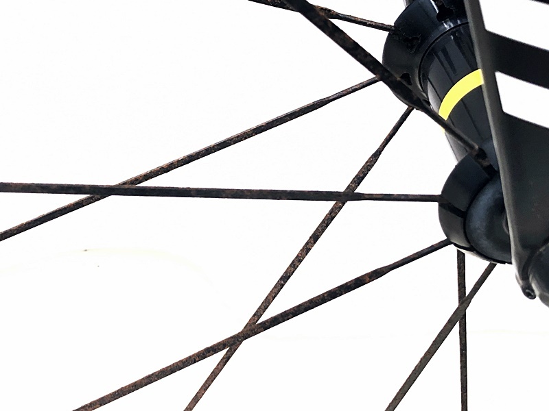 スポークはサビ、劣化が激しく、交換推奨となります。