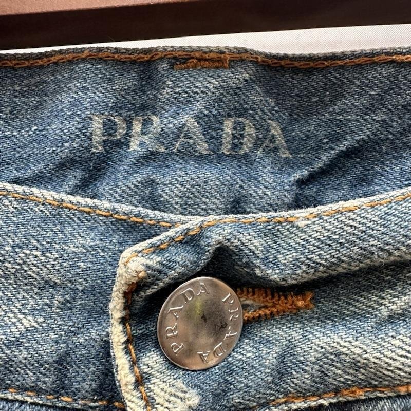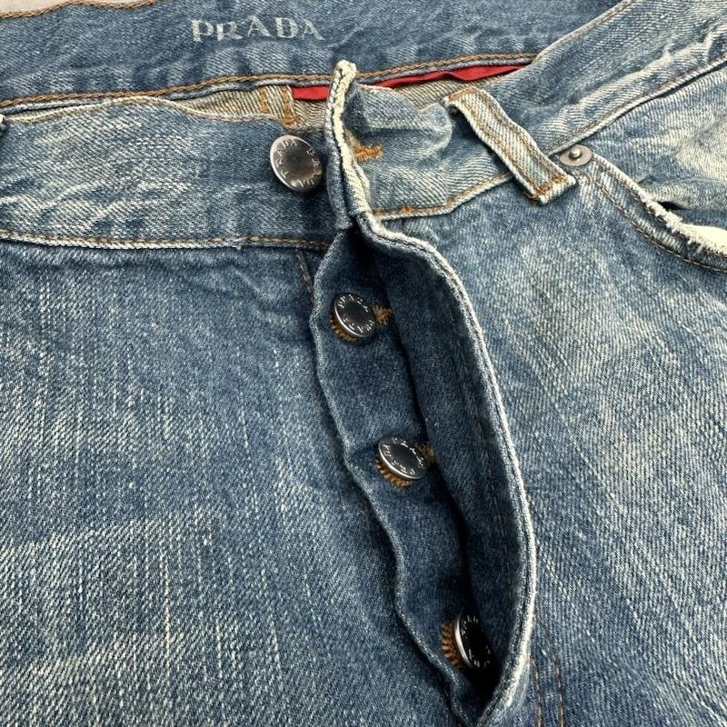プラダ イタリア製 ボタンフライ デニム ストレート パンツ GEP007 34