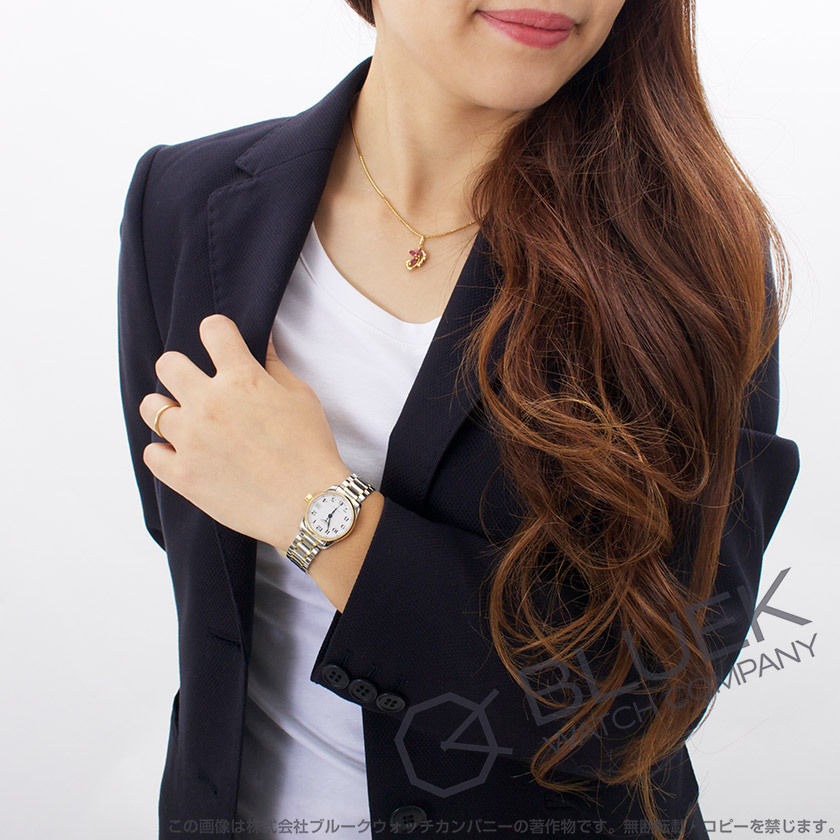 クラシックな気品にモダンさを融合させたマスターコレクションは、ロンジン人気のタイムピース。ケースやダイヤルに施された丁寧な仕上げが手元に高級感を香らせ、女性用には珍しい自動巻きムーブメントを搭載しているのも特徴です。中でも女性らしい小ぶりな25ミリケース&3連ブレスにゴールド映えるこのコンビモデルは、手元を爽やかに彩るシルバーダイヤルも魅力。3時位置に日付窓、ブルー指針とアラビア数字を備えたダイヤルには精緻なギョーシェ模様が施されて気品を漂わせ、機械が鑑賞できるケースバックは機械式初心者から上級者までおすすめです。 |