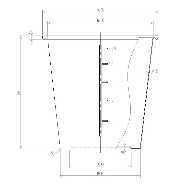 M-100 | フタなし | フタあり | 100 | 580 | 440 | 620 | 2.5 | 3.5 | 20L | 645 |
