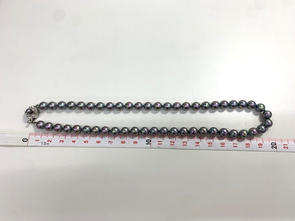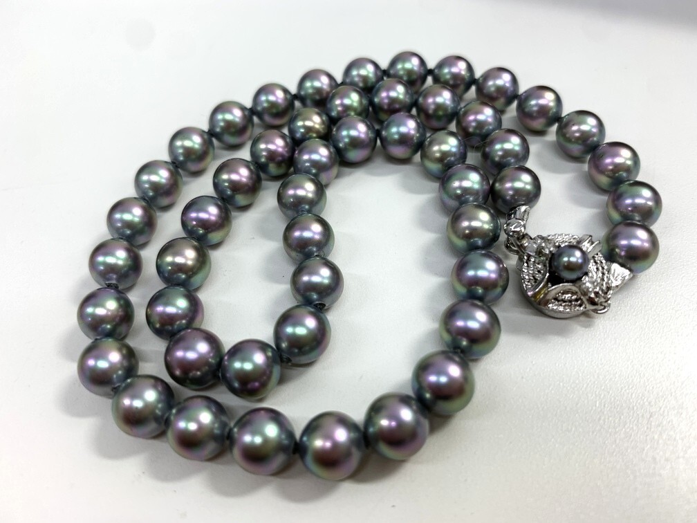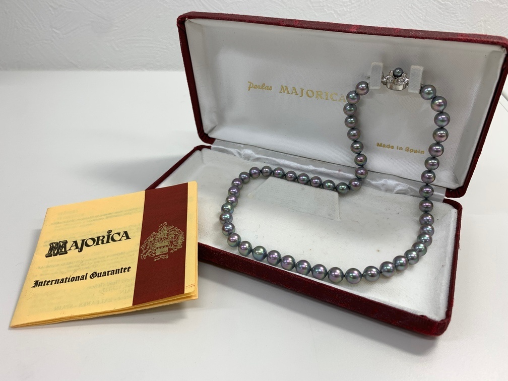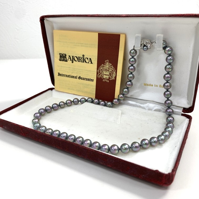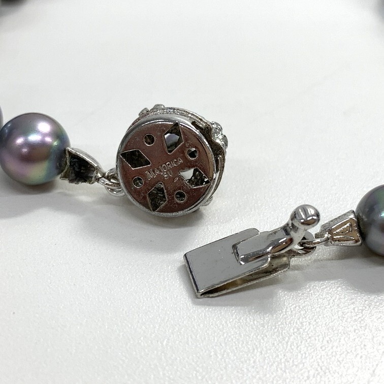 商品名 | マジョリカパール パールネックレス 【中古】 ブラック系 シルバー 真珠 全長約40cm アクセサリー ジュエリー ケース付き GIN9-227 |