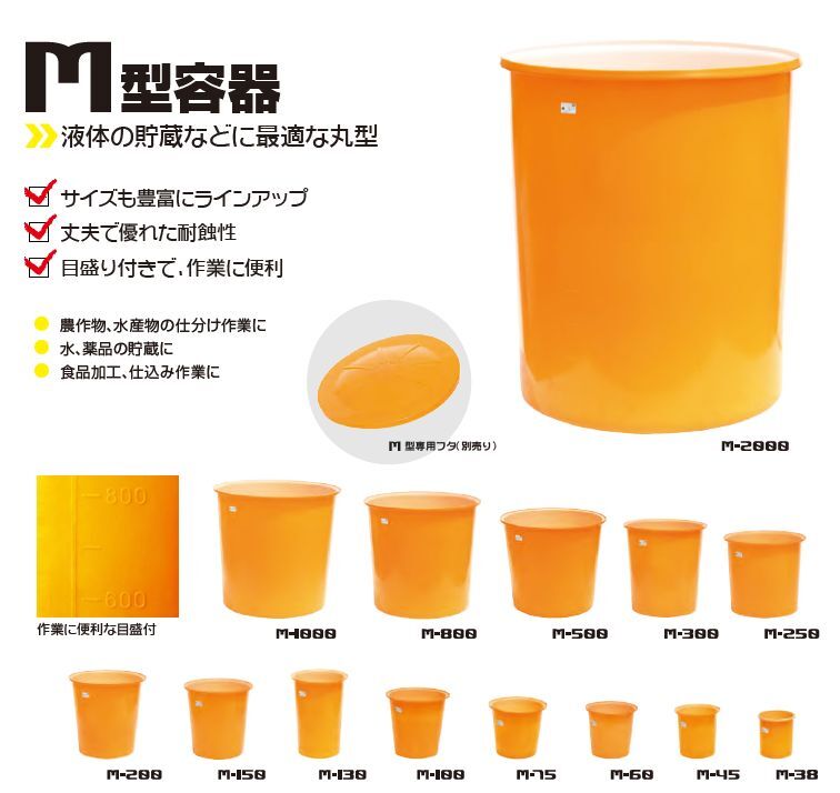 スイコー 丸型容器 M型 M-1000 1000L 専用フタ付き オレンジ 目盛り付 丸桶 農作物 水産物 洗浄 仕分 [個人様宅配送不可]