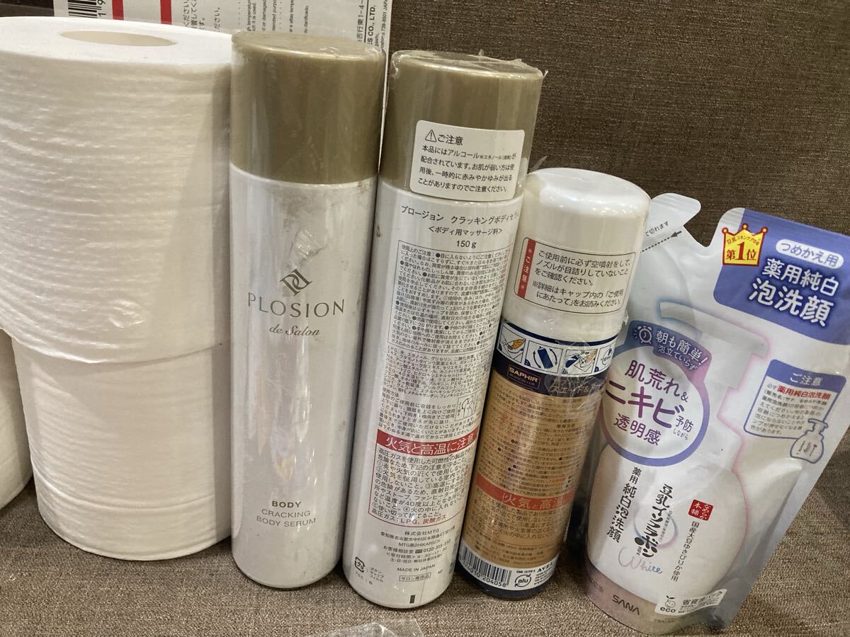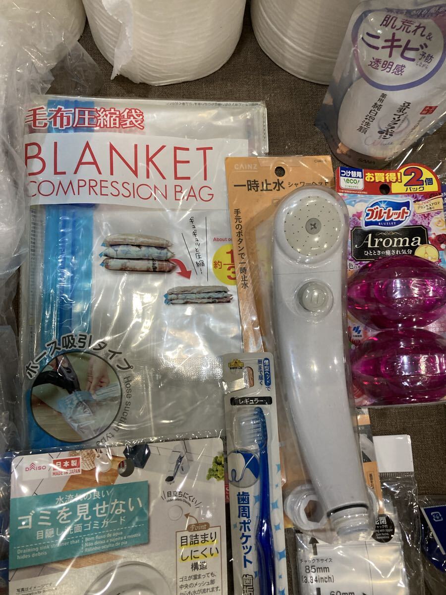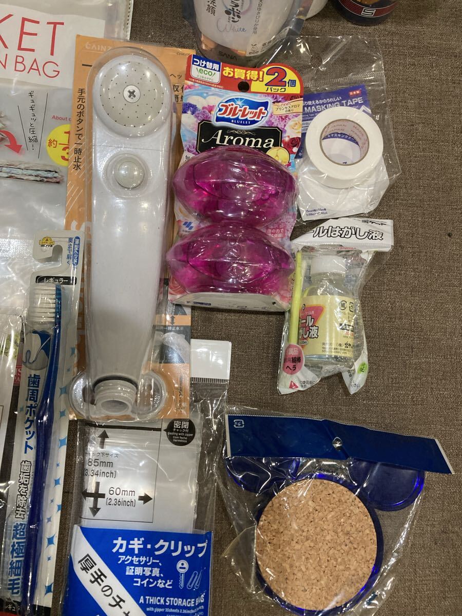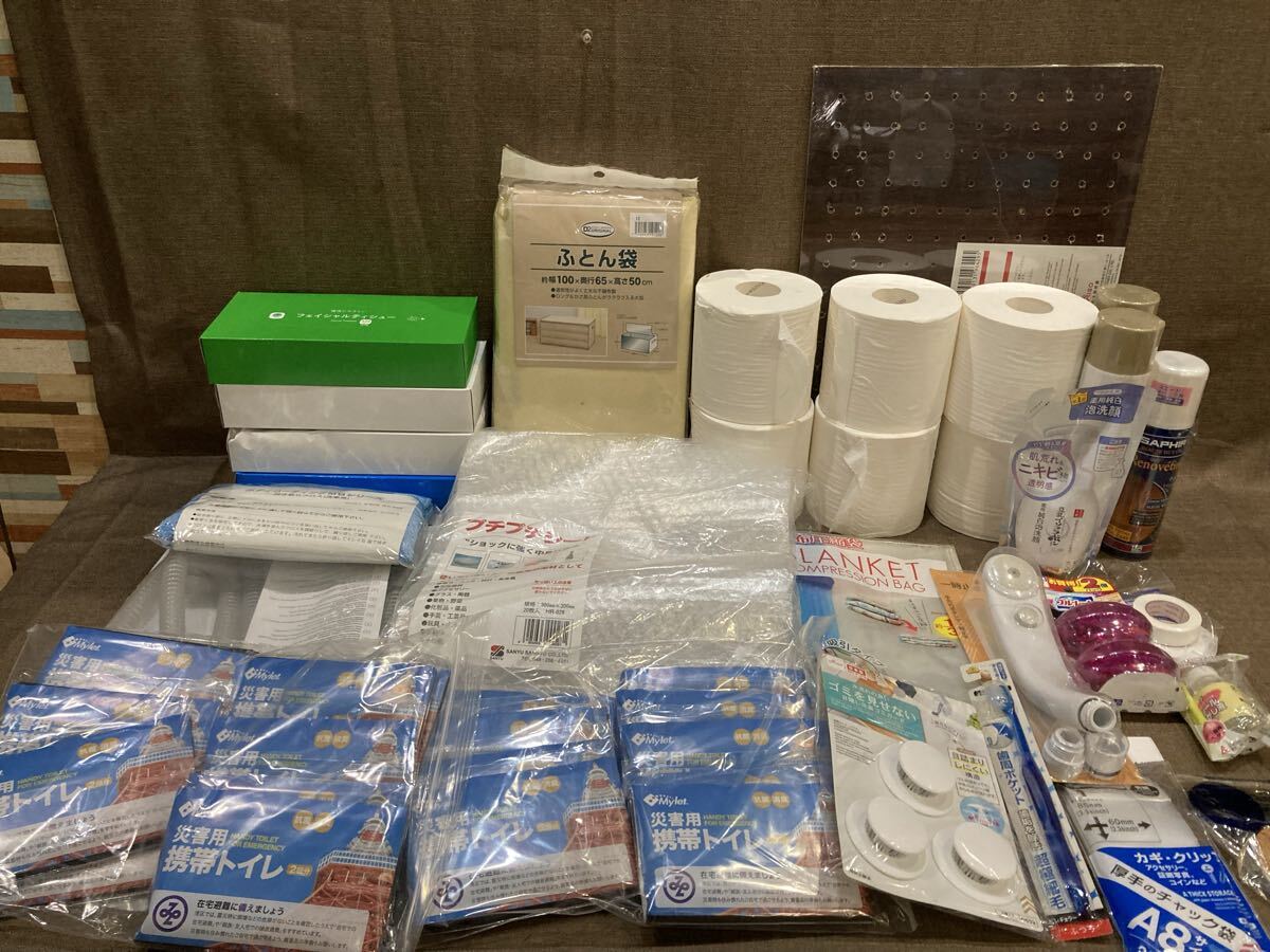 51【日用品まとめ】シャワーヘッド 洗顔料 チャック袋 トイレットペーパー 箱ティッシュ プチプチシート 携帯トイレ あ