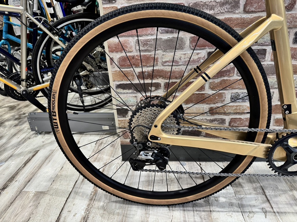 太目のタイヤでオフロードでも十分に楽しめる万能型のグラベルバイクです。