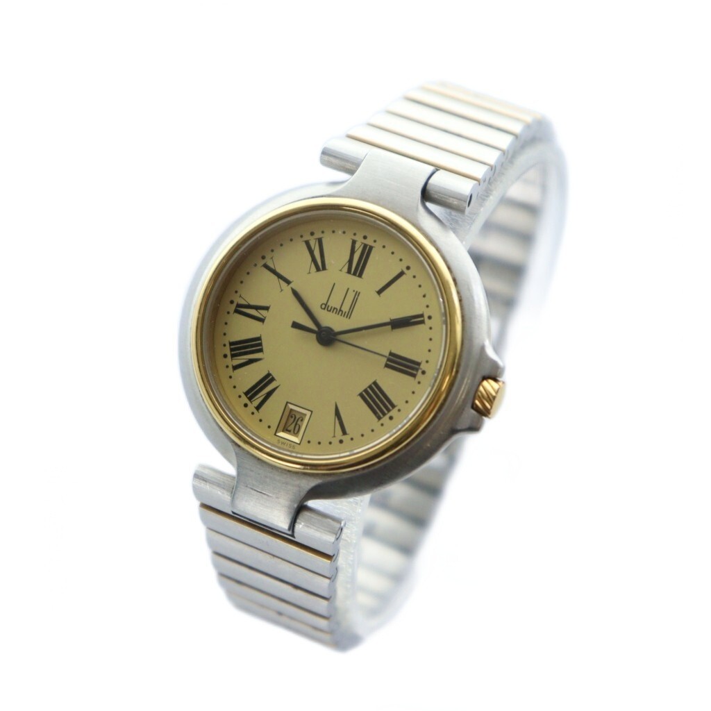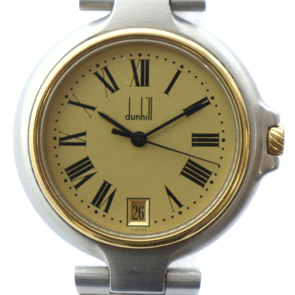 ダンヒル dunhill 腕時計 ミレニアム ウォッチ クォーツ デイト カレンダー付き ロゴ ローマン 金色文字盤 コンビカラー 銀色