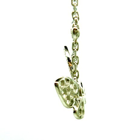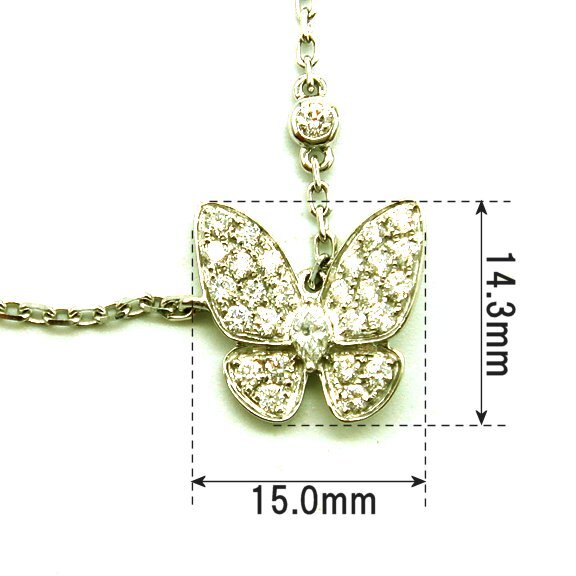 蝶のデザインはチェーンにぶら下がると斜めに傾いたように着き、今にも羽ばたきそうなイメージです。