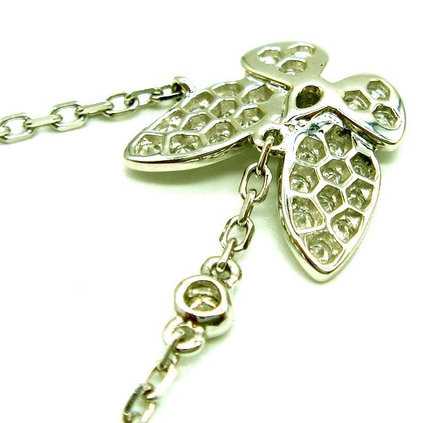 胴体部分をマーキスダイヤで表現し、羽にはメレダイヤを敷き詰め、チェーンの先にはアクセントに大粒のメレダイヤを1粒配置。