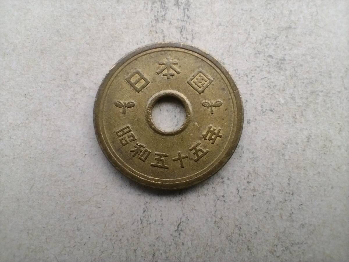 昭和55年 5円玉 5円硬貨 5円黄銅貨 昭和五十五年 1980年 一九八〇年 五円玉 五円硬貨 コイン メダル 貨幣 硬貨 黄銅 ブラス 真鍮 即決