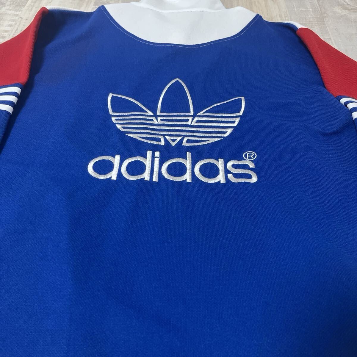 【希少 バックデカトレフォイル 総刺繍 オリジナルジップ】80s adidas ハーフジップ プルオーバー トリコロールカラー トラック ジャケット アディダス ジャージ シャツ メンズ レディース アディダス