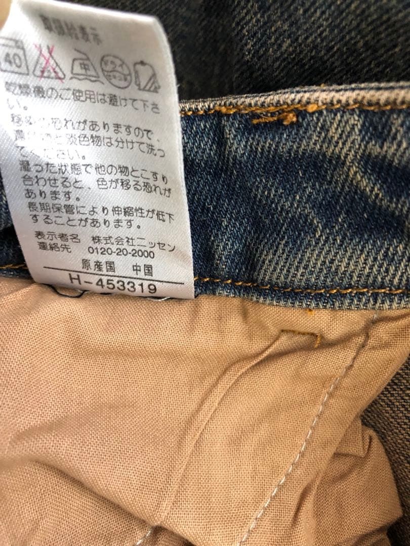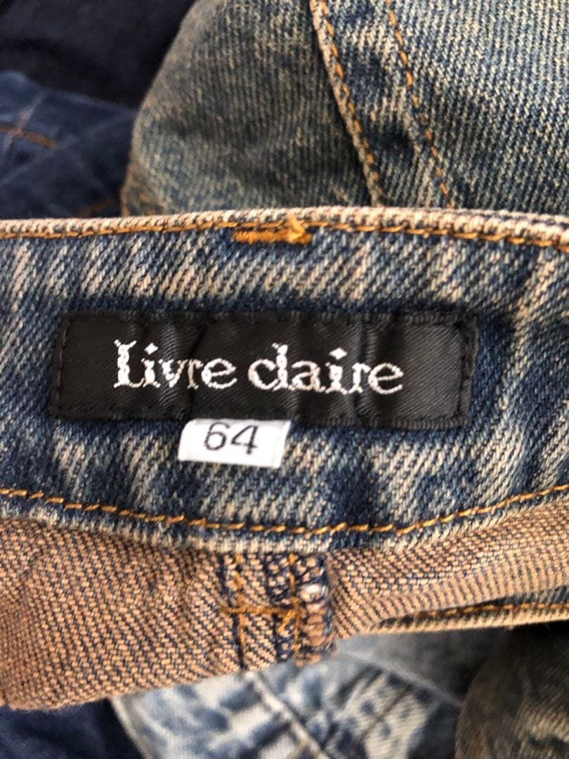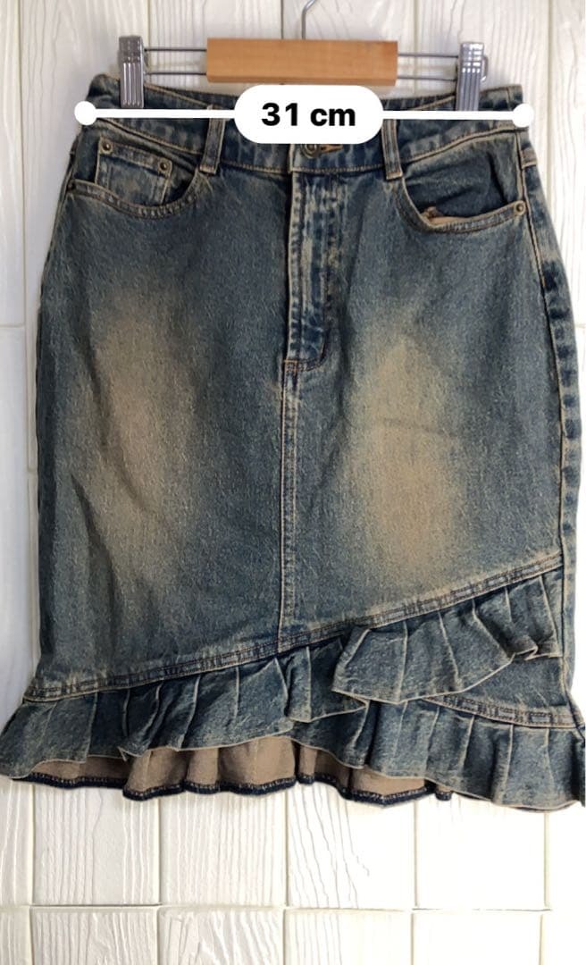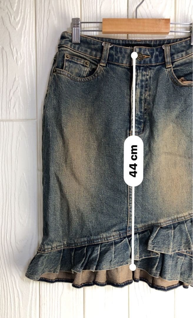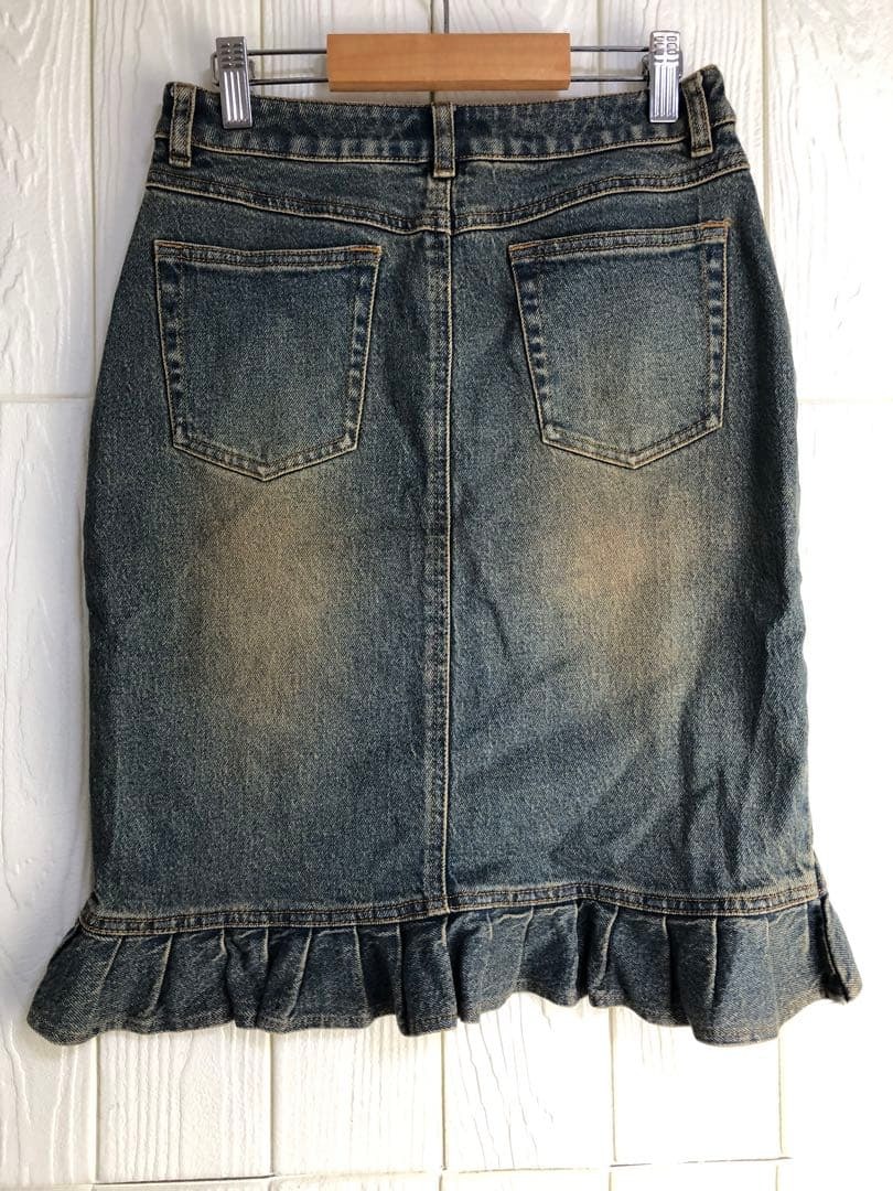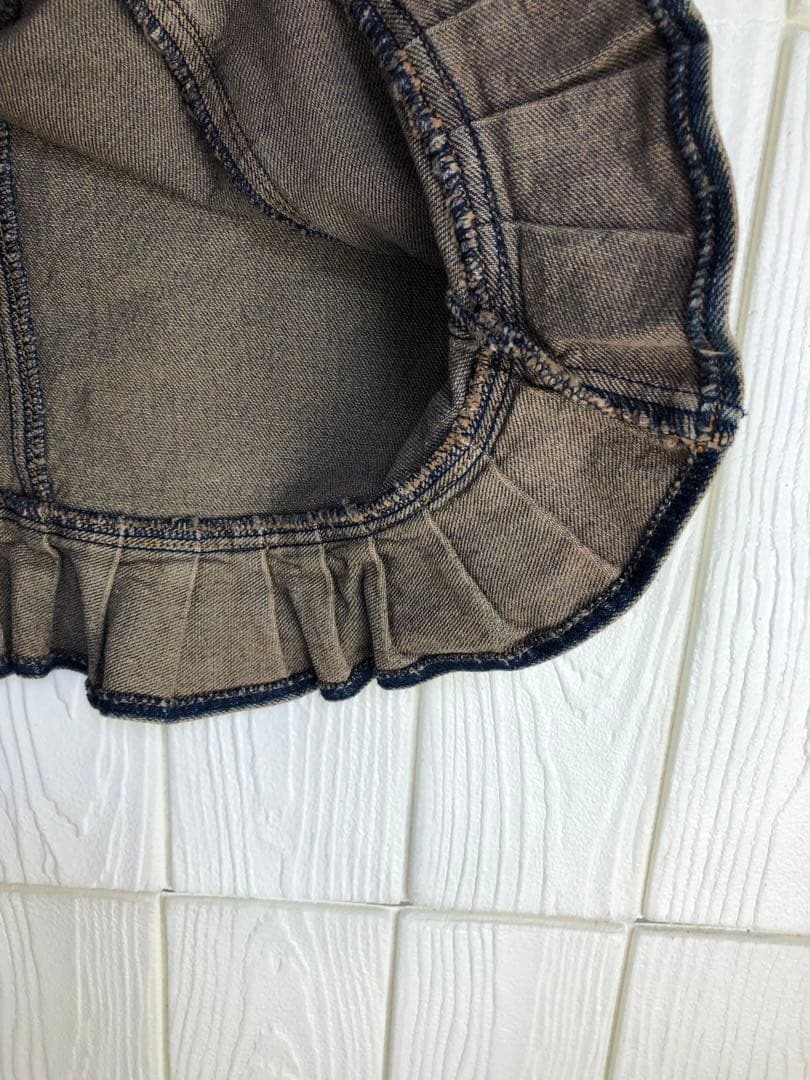 フリルデザインのデニムミニスカート、ウエスト62cm、丈44cm。