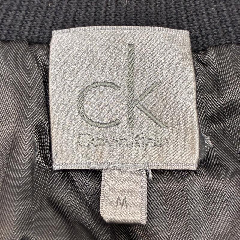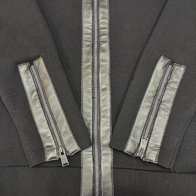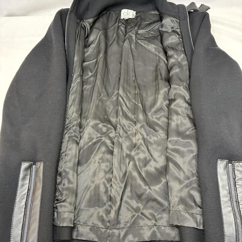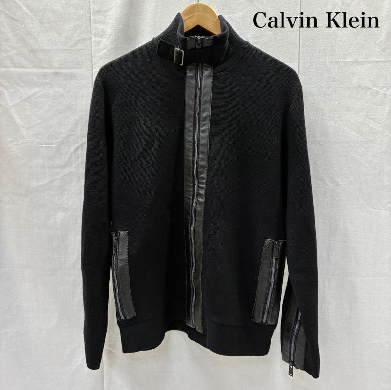 カルバン・クライン ニットジャケット レザーデザイン フルジップ black M