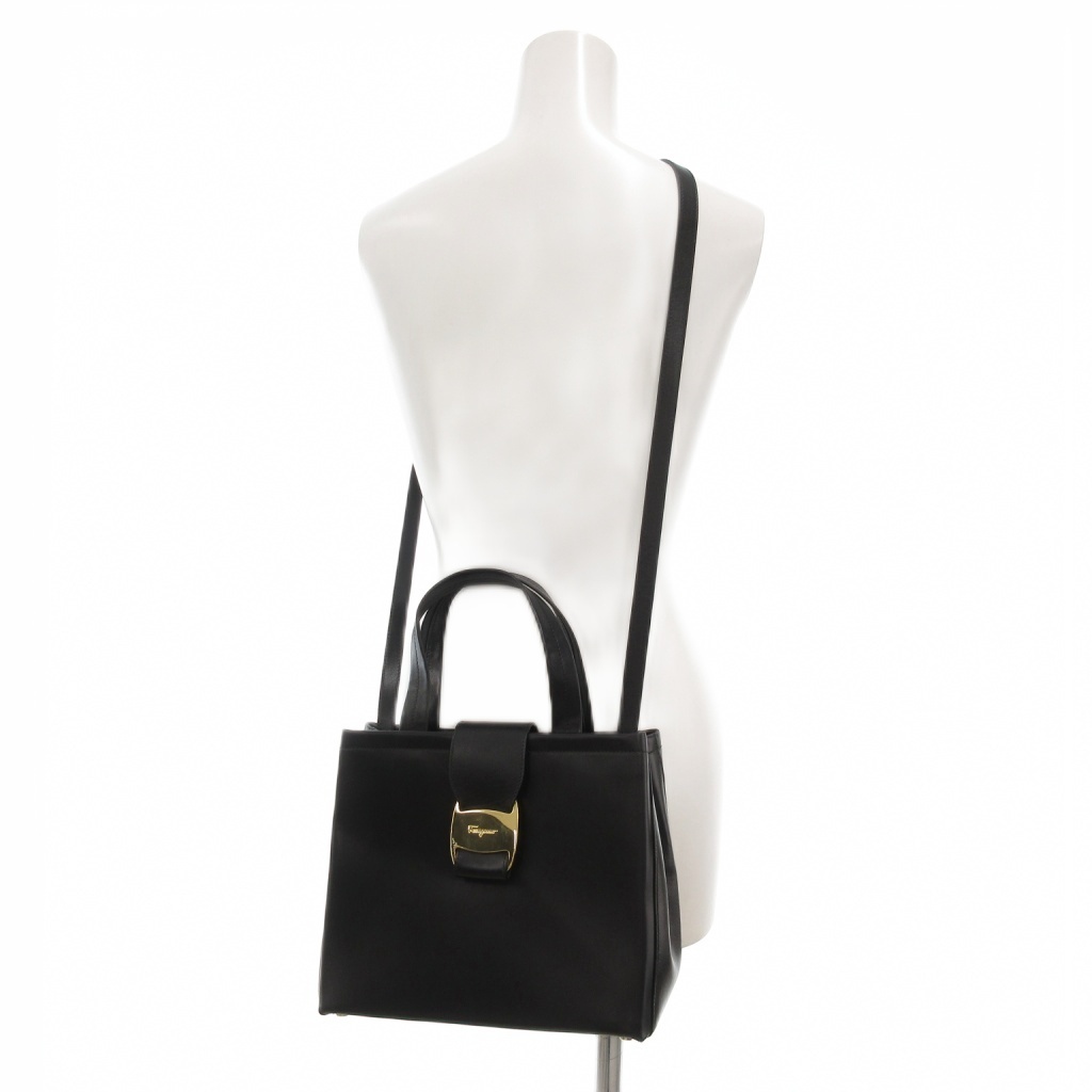 サルヴァトーレフェラガモ Salvatore Ferragamo ヴァラ トートバッグ ショルダー 2WAY ハンド レザー リボン ゴールド金具 黒 ブラック