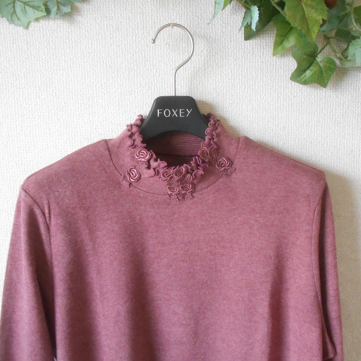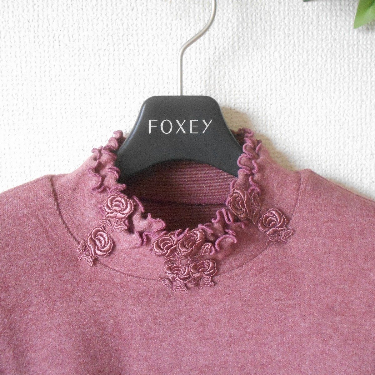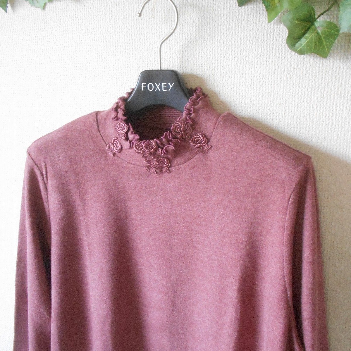 【ポイント】アンプラグドのレディース用セーターになります。お色はくすみピンク系で秋冬を中心に着ていただけるお品です。ハイネック部分にはお花のレースが付いた、とっても素敵なデザインです。