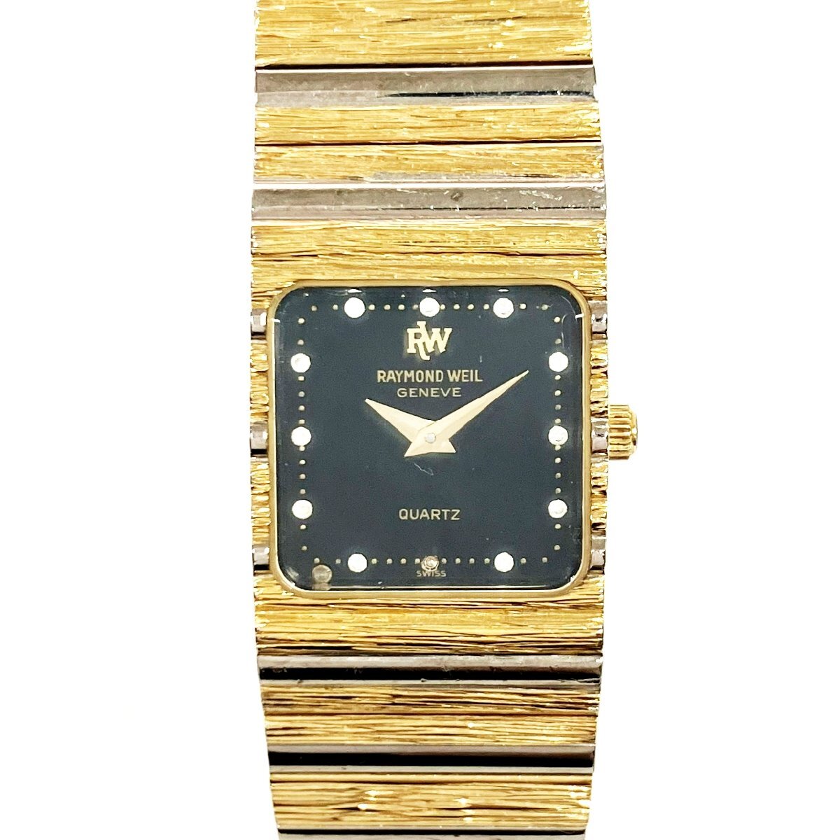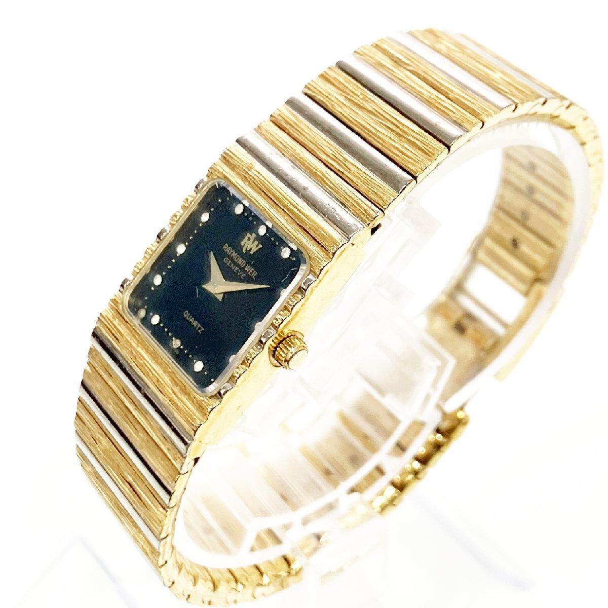 【1円スタート】RAYMOND WEIL レイモンドウェイル 8056 18K GOLDELECTROPLATED ブラック文字盤 クオーツ レディース腕時計 489587