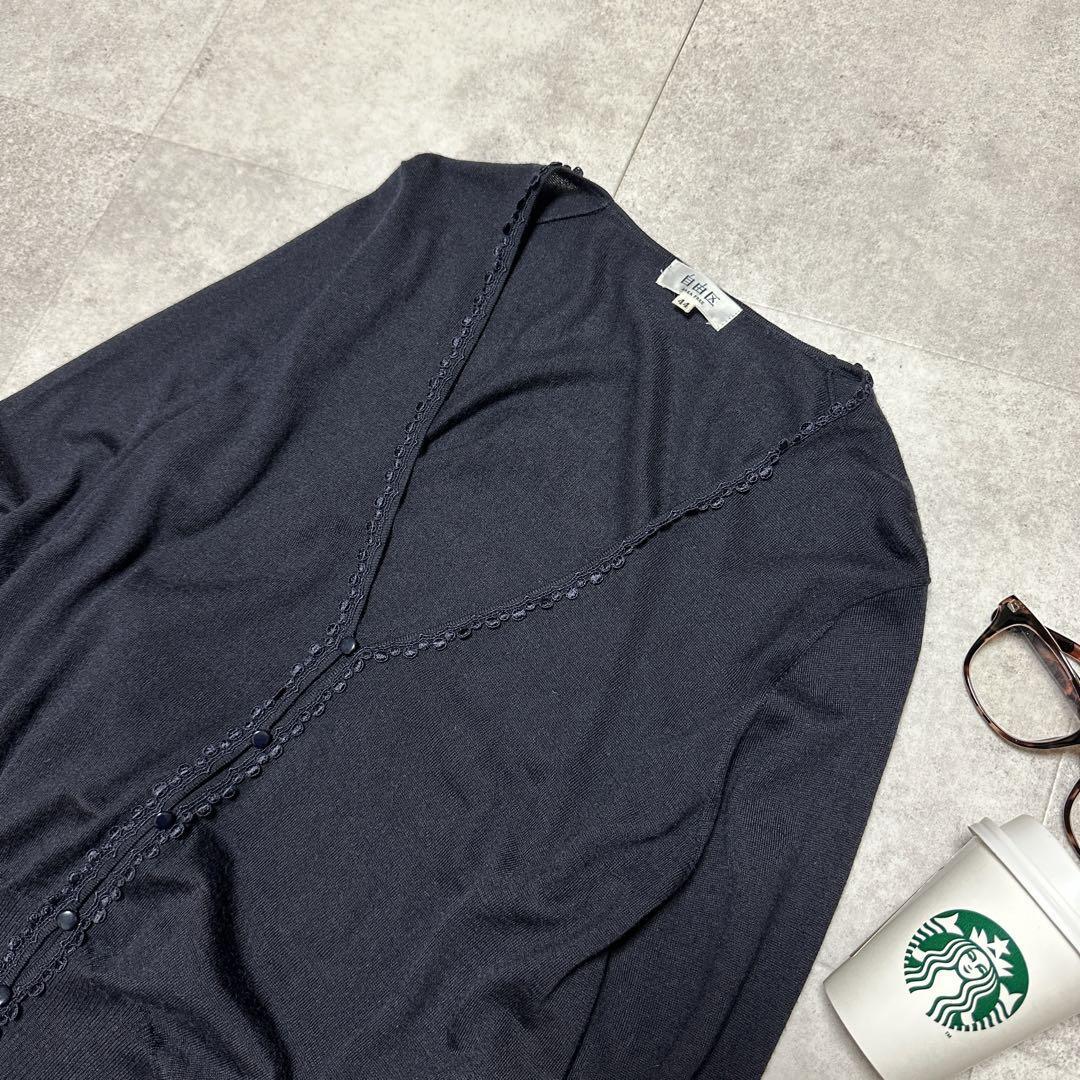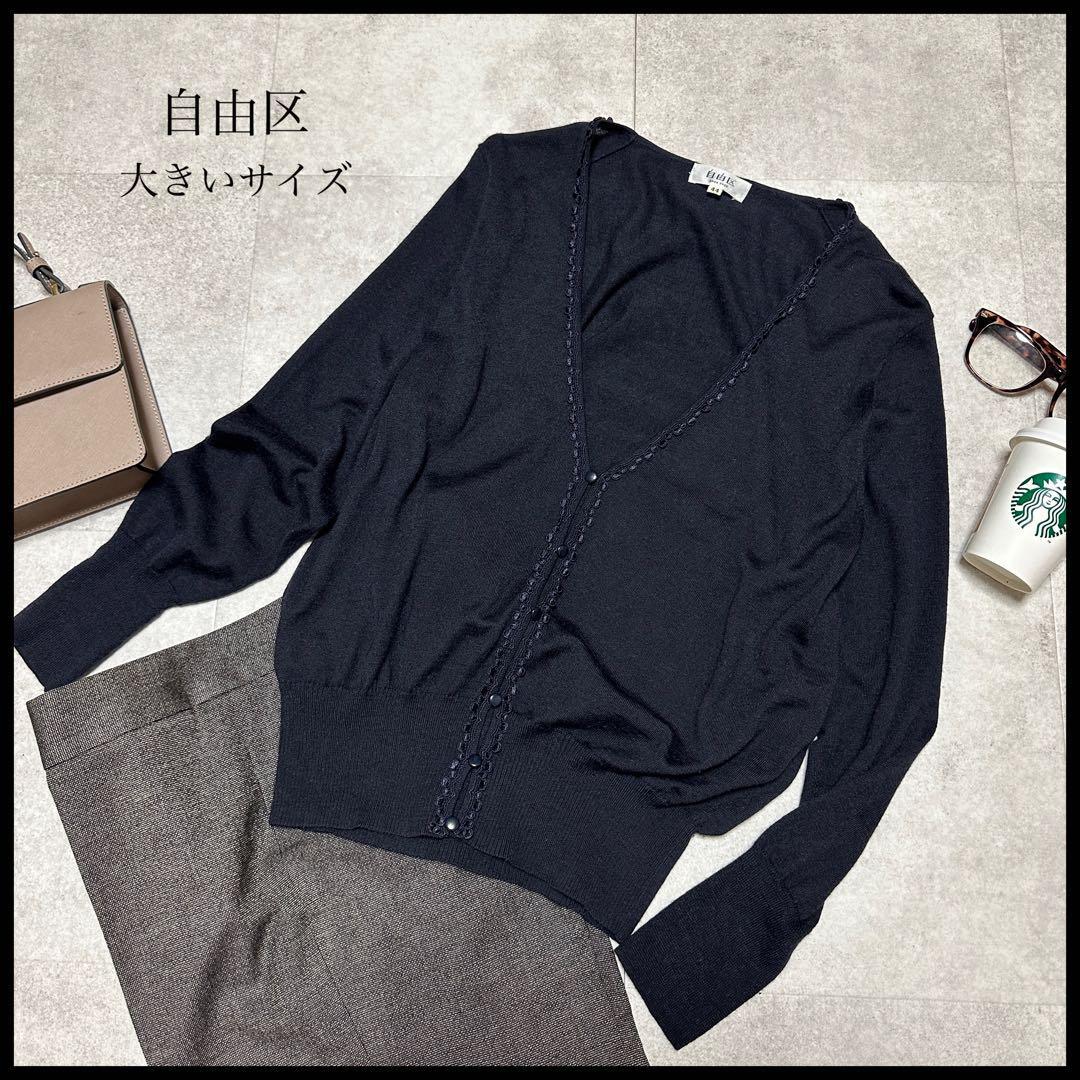 カーディガン 長袖 Vネック 秋冬 オフカジ アンゴラ混 ビジュー付き