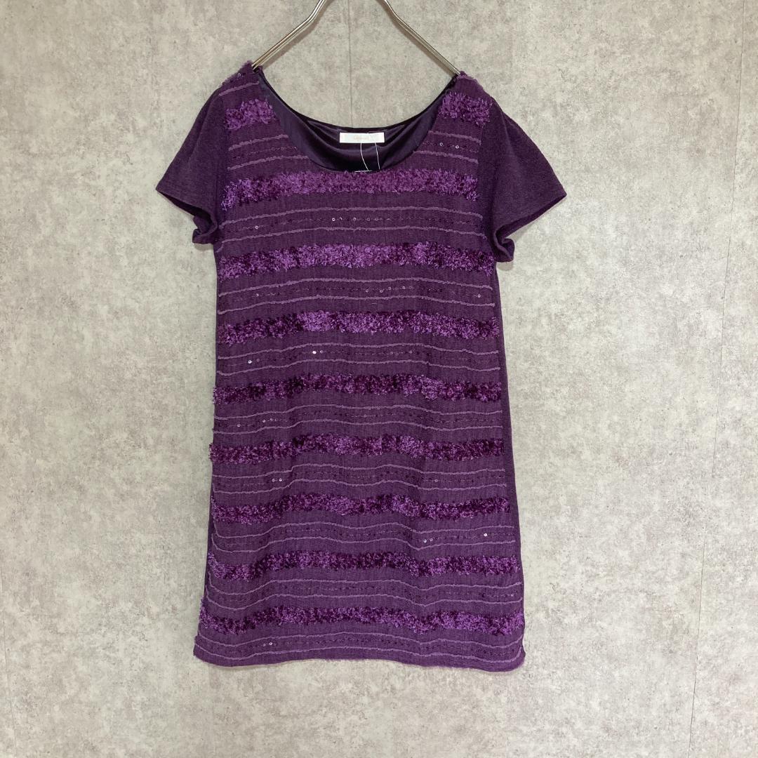 アフターオール(M)ボアスパンコールチュニック*半袖*裏地*伸縮性*ワンピース