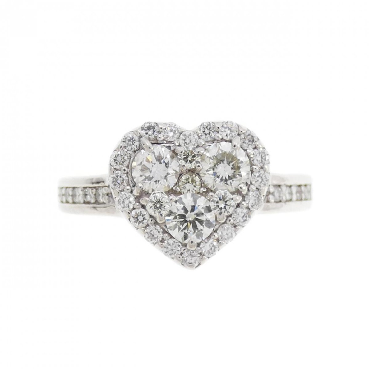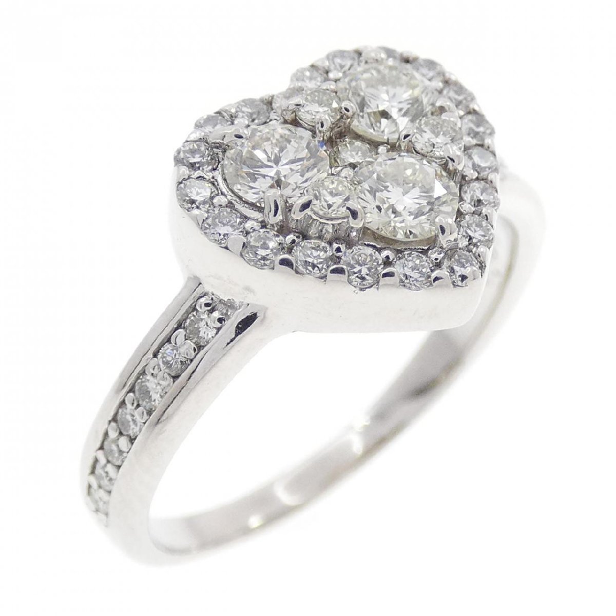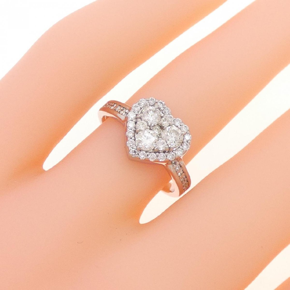 指元を愛らしく飾るハートモチーフのリング。照りの良いダイヤモンドがあしらわれています。