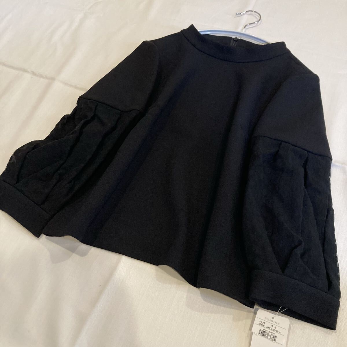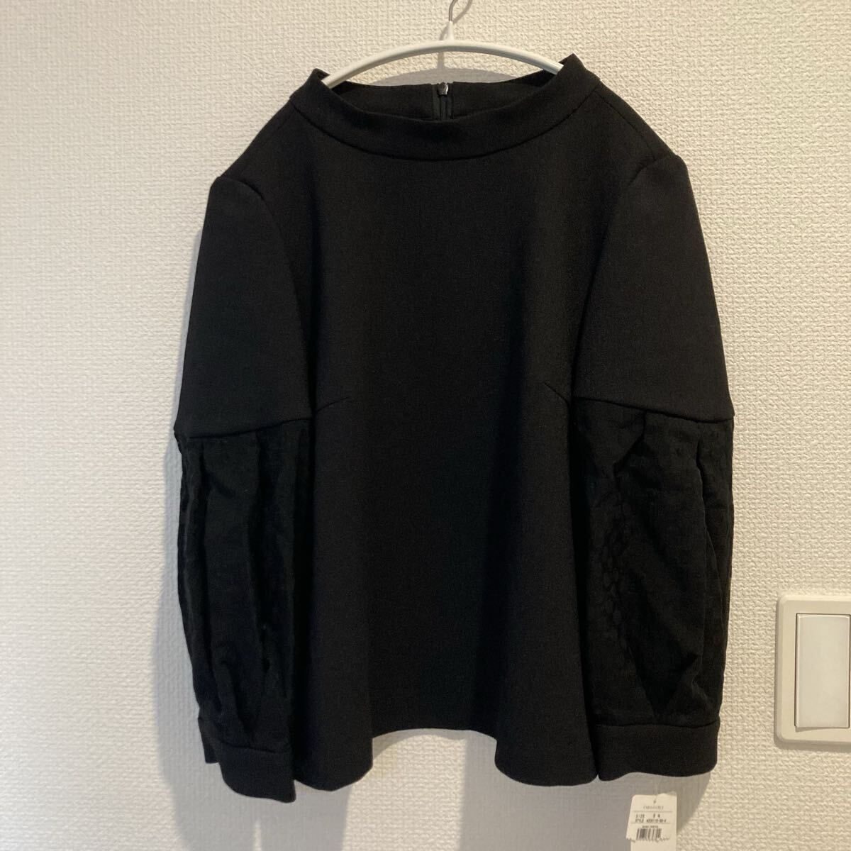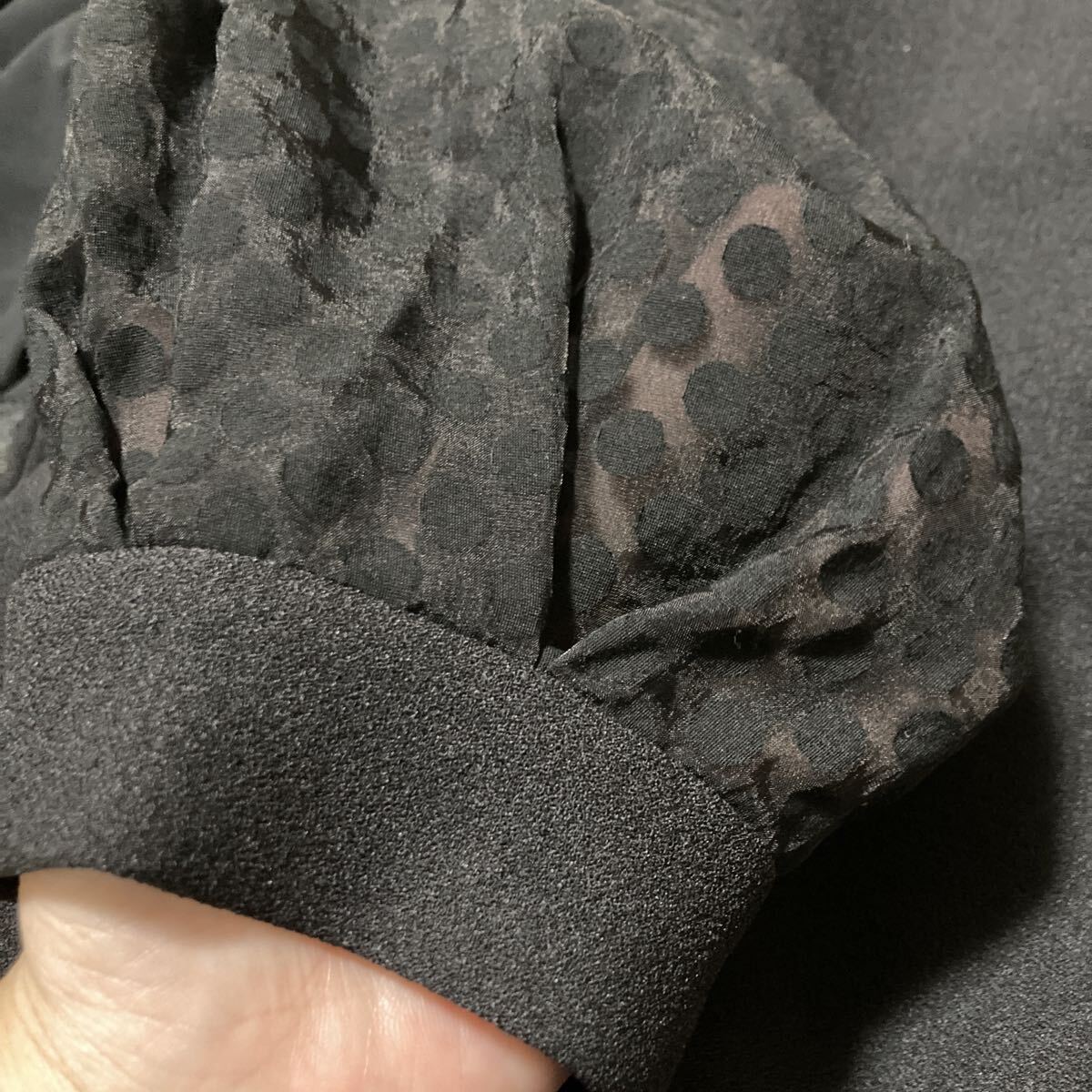 画像では分かりにくいですが、ドット柄透け感レースの切り替え袖がふんわりとしてとても可愛いです。
