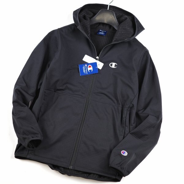 Champion チャンピオン メンズ アウター 長袖 ストレッチ 保湿 撥水 防風 ワンポイントロゴ フルジップフーディー ブルゾン 黒 |