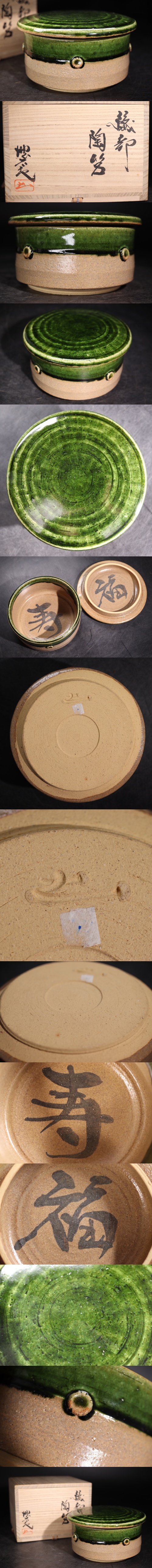 | 児島塊太郎 造 織部 陶筥 共箱付 / 筥 箱 茶器 煎茶道具 煎茶飾 .G2672 |