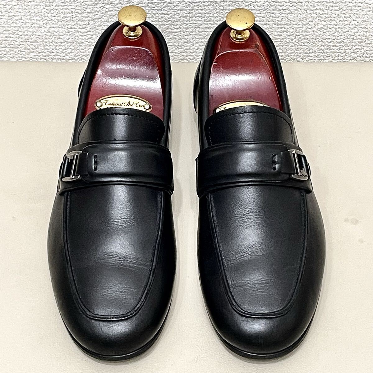 ビジネスカジュアルからタウンユースに亘って活躍するブラックのシルバービットローファーです。