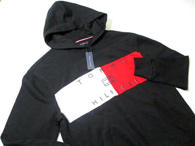 定価16500円▼ 新品 未使用 トミーヒルフィガー スウェットパーカー 黒 ブラック フーディー Lサイズ TOMMY HILFIGER メンズ