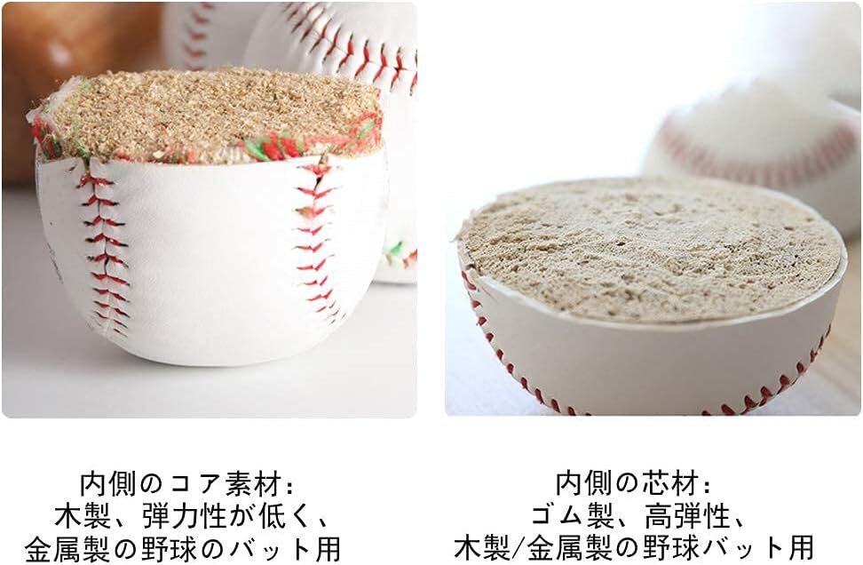 PUレザー+木製;この野球の内核は木でできています。打撃練習向きです。 フリーバッティングなどに向いている低反発練習球で公式試合球と同構造です。     細かい仕上がり、細かいステッチ、目に見える品質、糸の端のひび割れを心配する必要はありません     外層および内部構造、固体材料の層