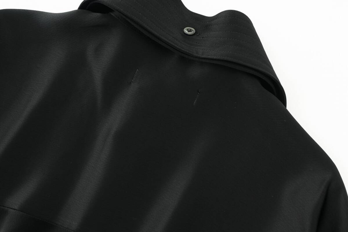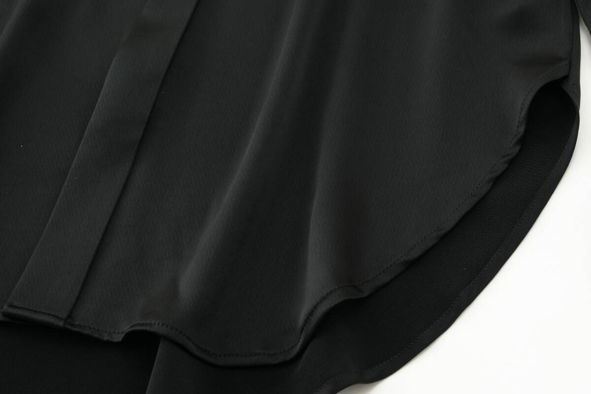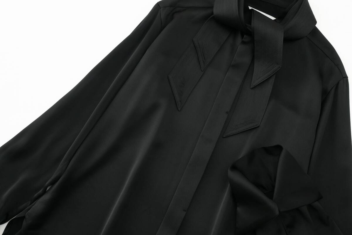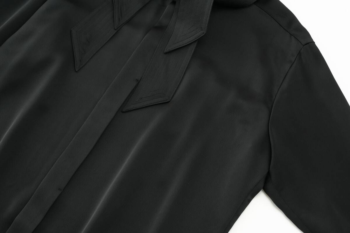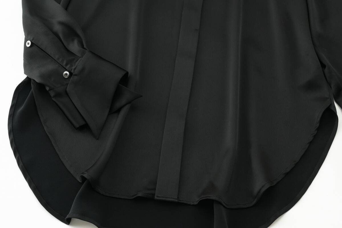 艶やかな生地感がリュクスな雰囲気を放つブラックブラウス。