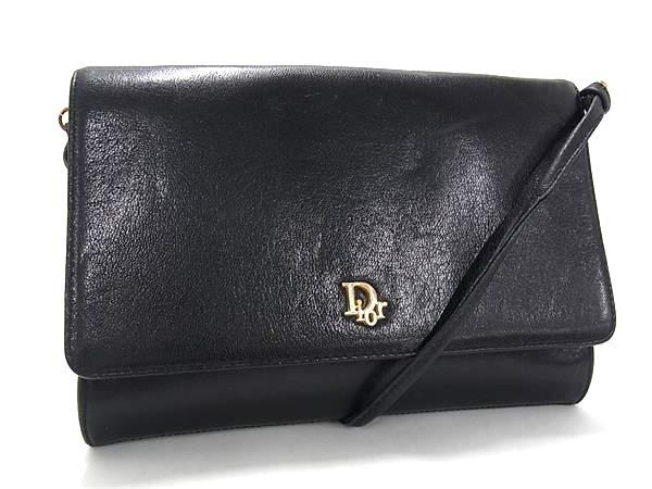 1円 ChristianDior クリスチャンディオール ヴィンテージ レザー クロスボディ ショルダーバッグ 斜め掛け レディース ブラック系 FP7802
