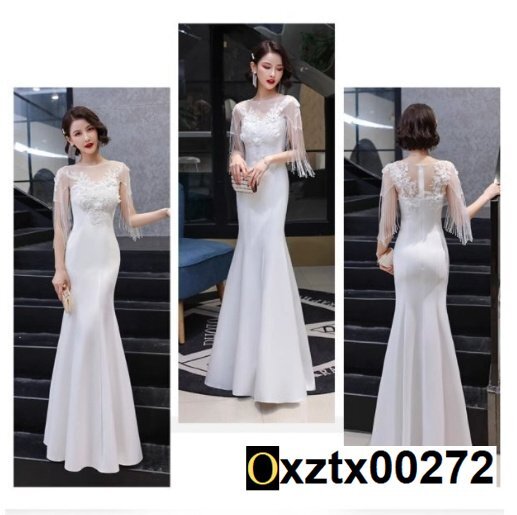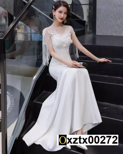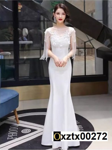 【新品】演奏会 発表会 結婚式 撮影 パーティー ステージ イベント ロング ドレス白XS~3XL選択