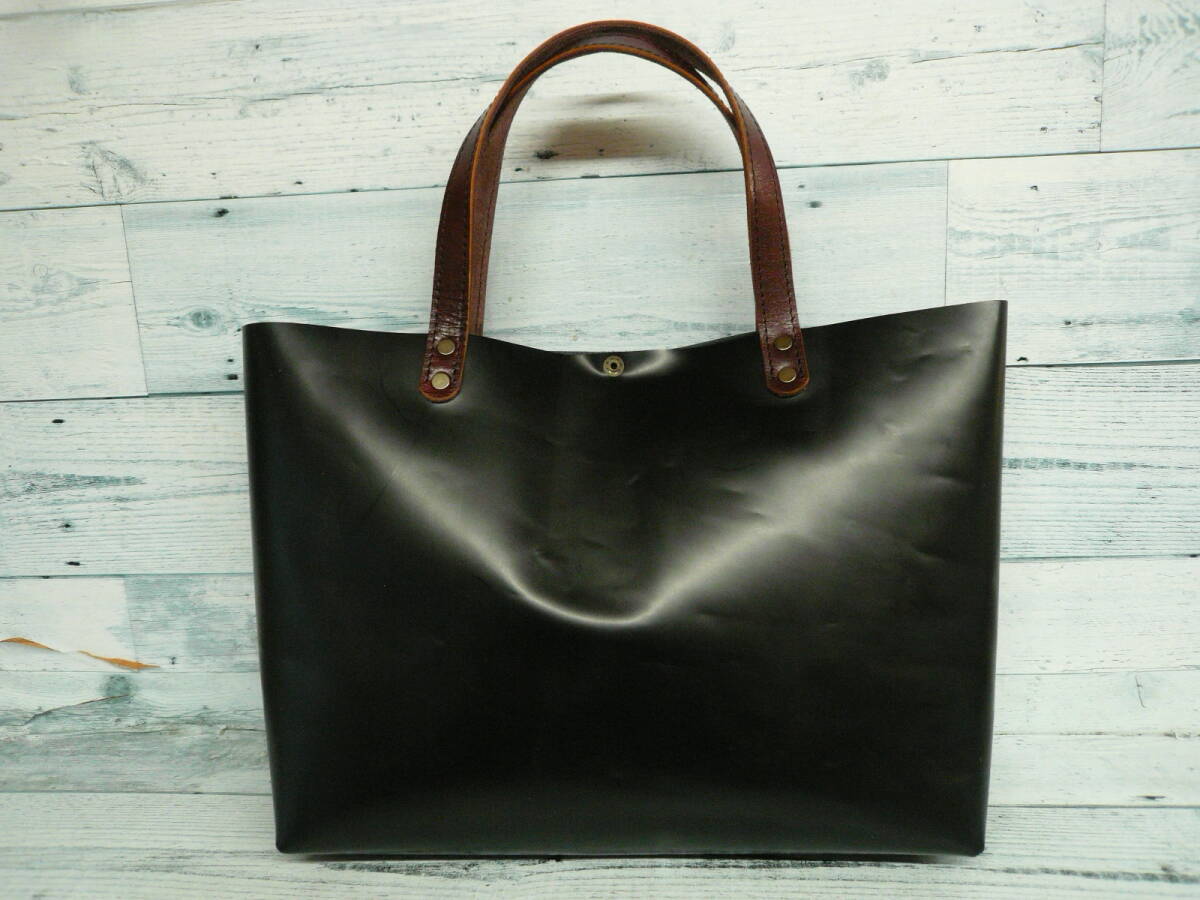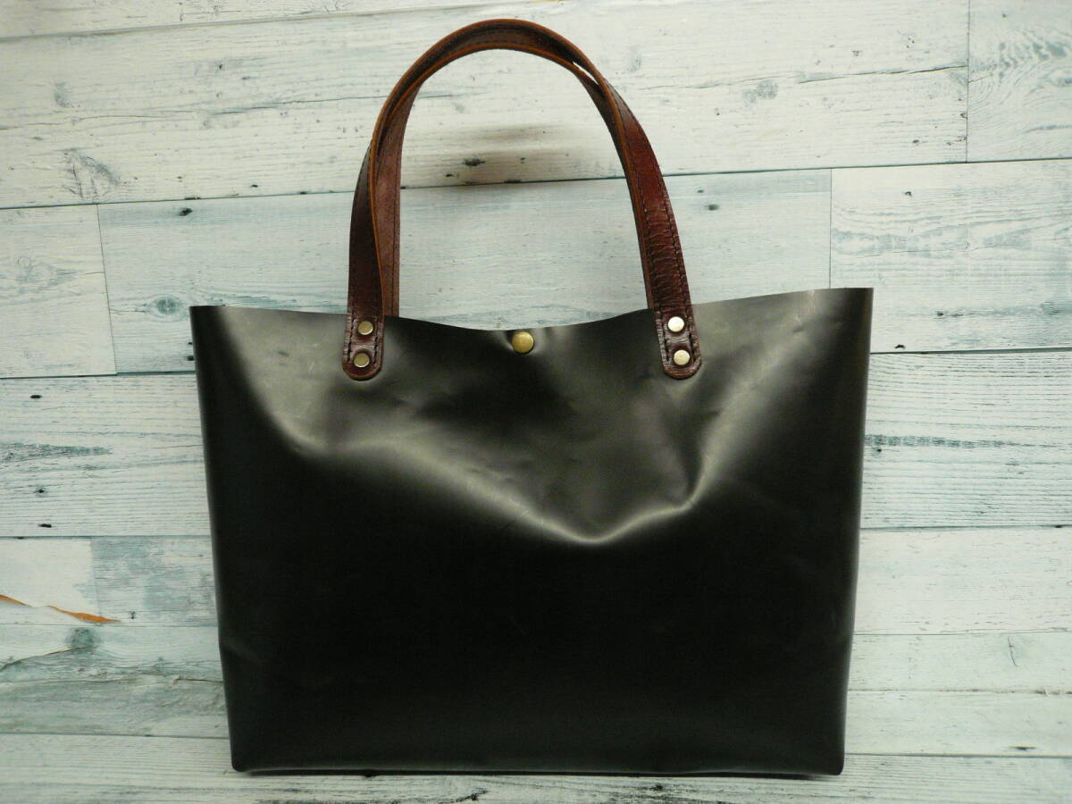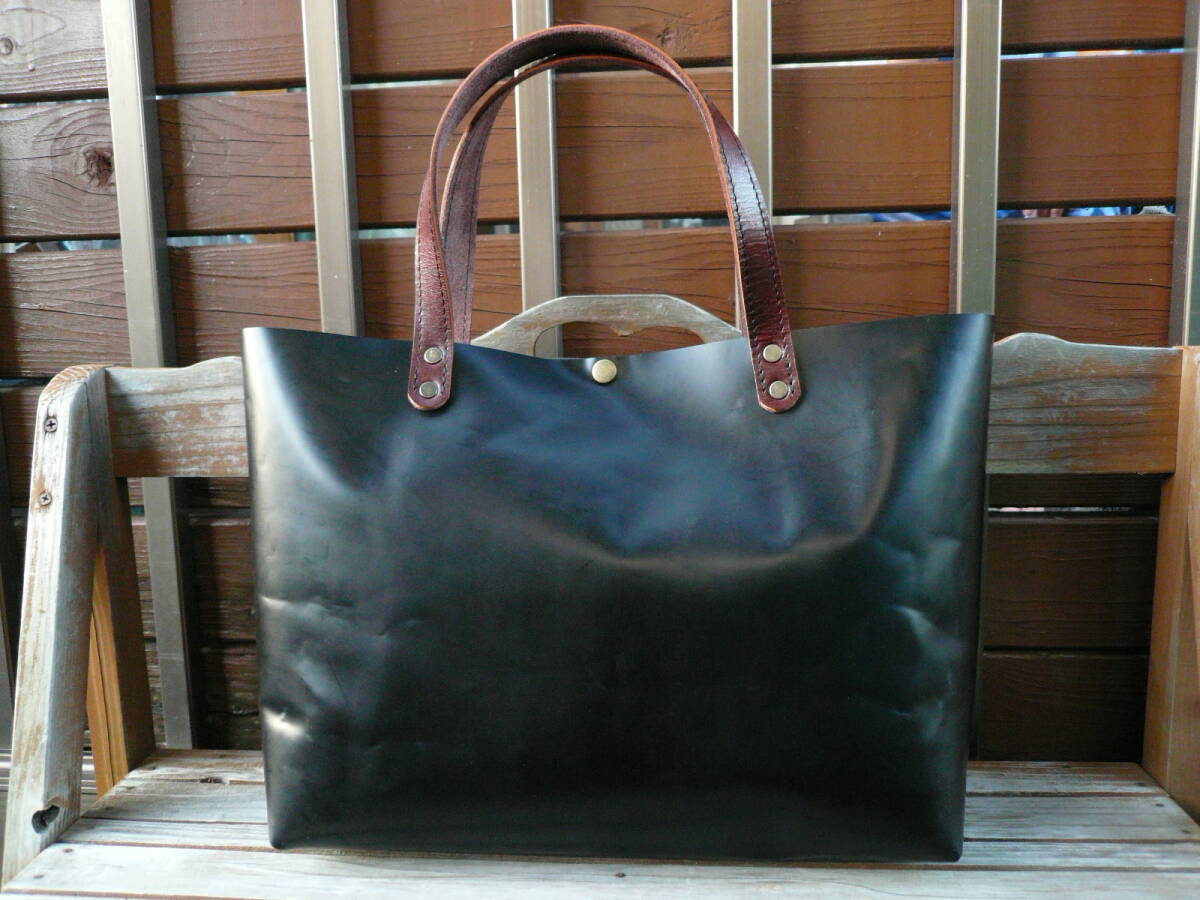 【黒ブラック!トートバッグハンドバッグ牛革】シンプルレザーバッグ軽量 BLACK ハンドメイドオリジナルバッグ 436